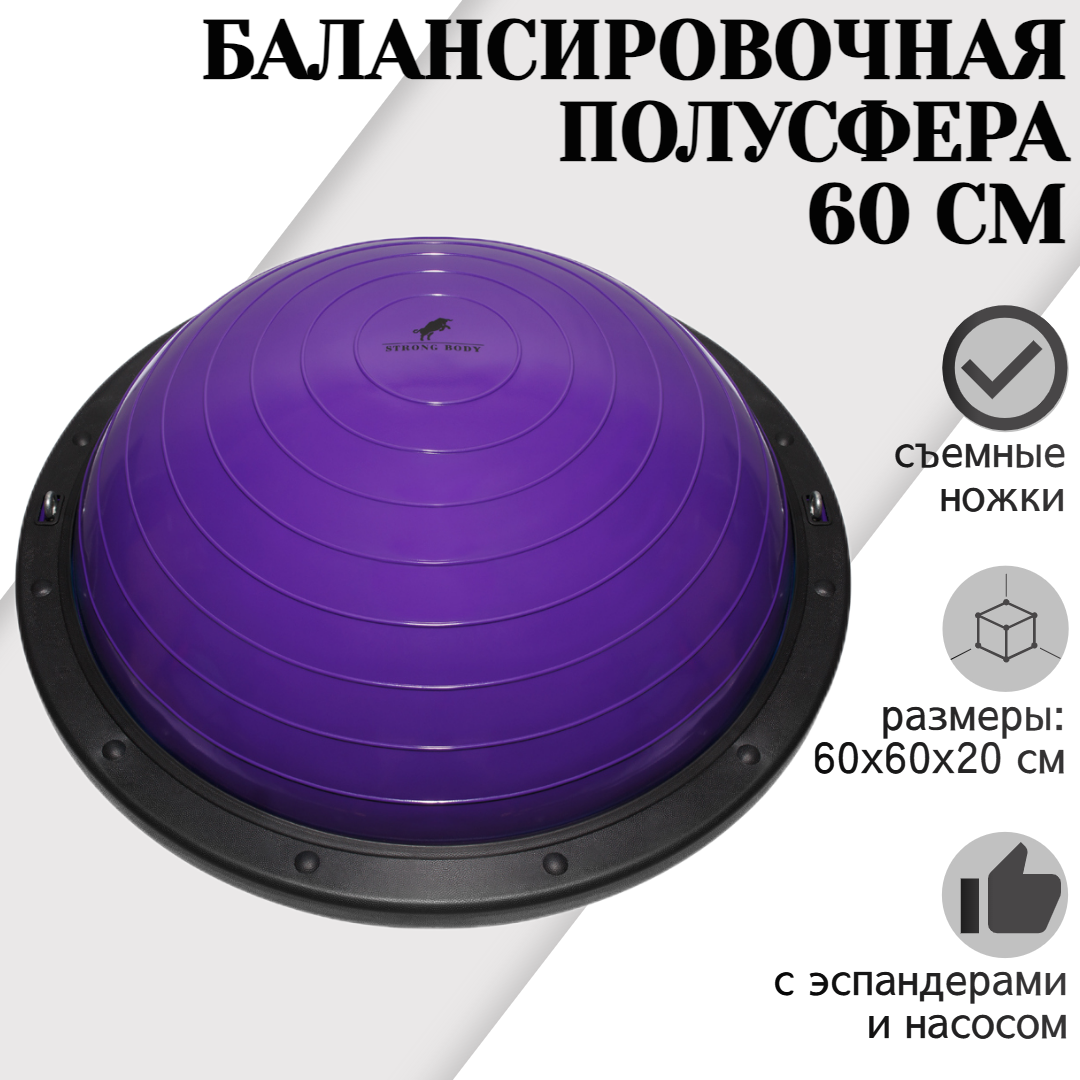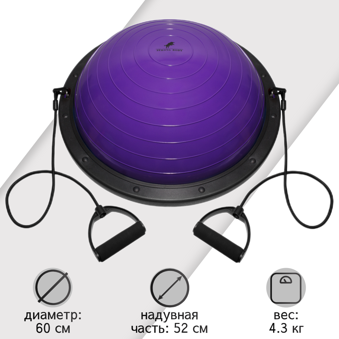 Балансировочная полусфера BOSU PROFI в комплекте со съемными эспандерами, фиолетовая, STRONG BODY интересное: