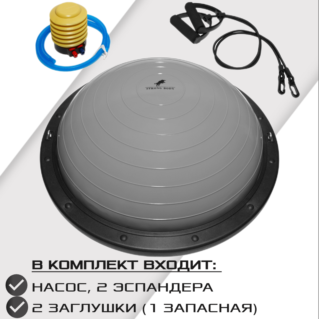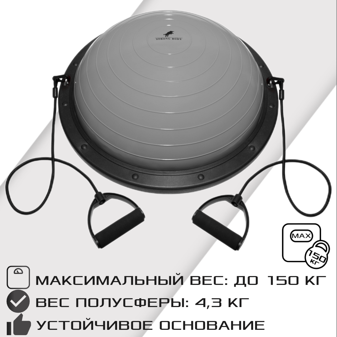 Балансировочная полусфера BOSU PROFI в комплекте со съемными эспандерами, серая, STRONG BODY интересное: