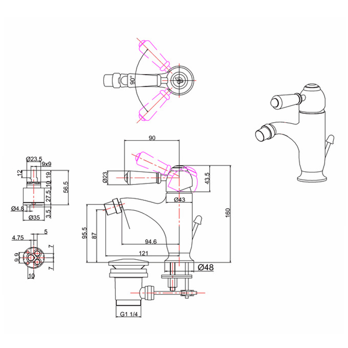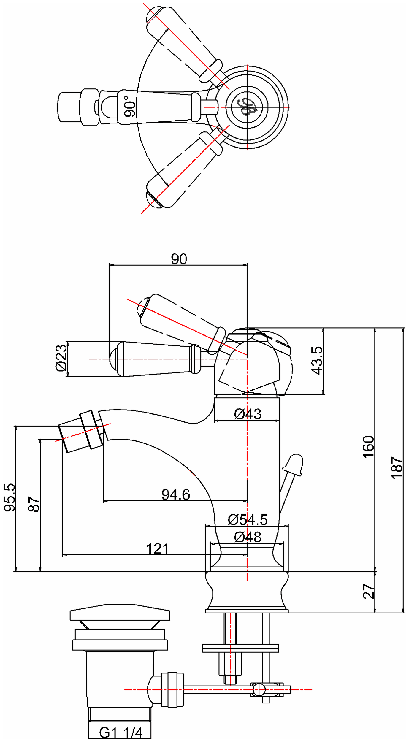 Смеситель для биде Burlington CH23 BLA хром/ручка черная