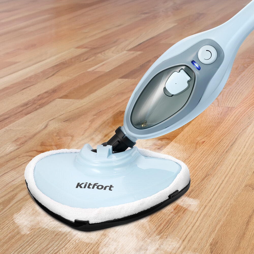 Паровая швабра Kitfort KT-1044, 1500 Вт, 350 мл, шнур 8 м, голубая