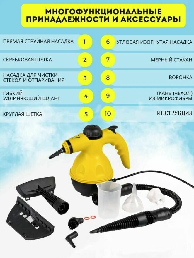 Пароочиститель для уборки дома / Отпариватель для чистки мебели универсальный, желтый TH107-7 интересное:
