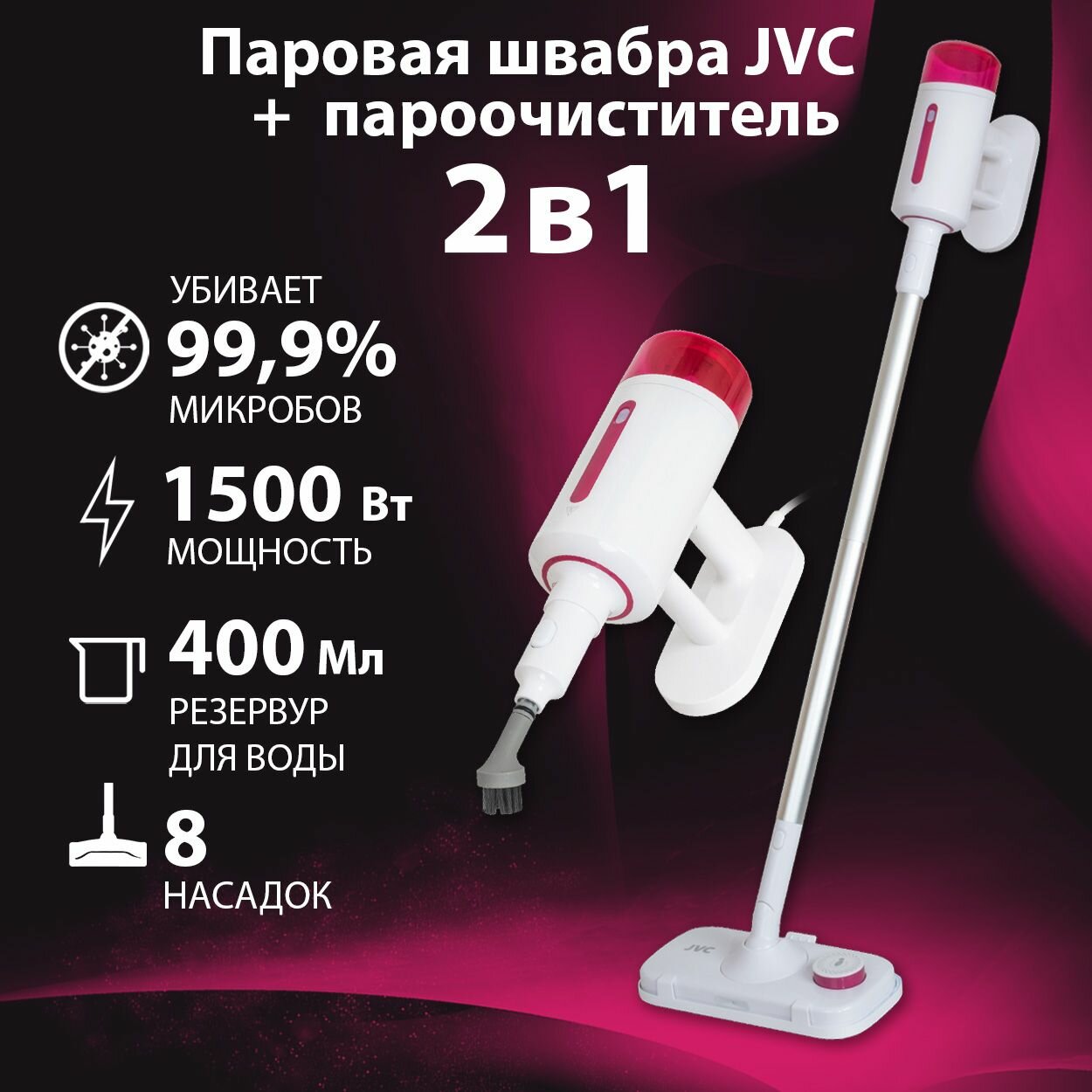 Паровая швабра JVC JH-MS1000 1500Вт, 400мл интересное: