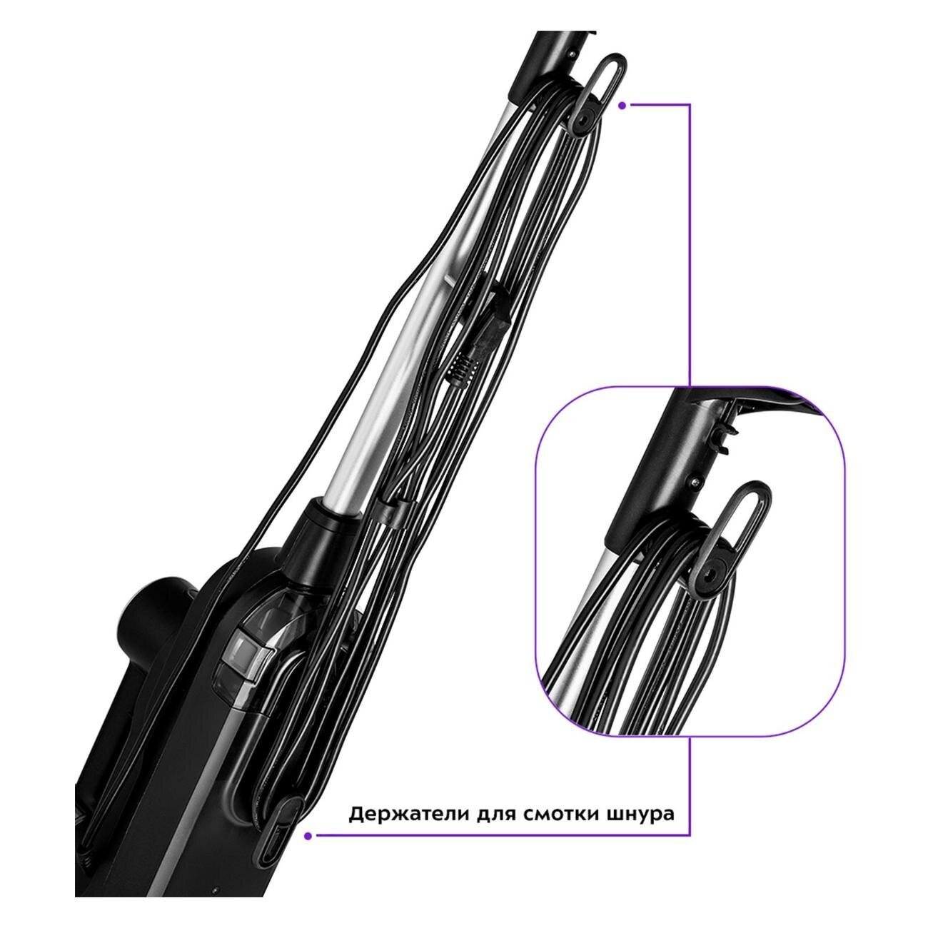 | Минусы: | Не очень удобно наматывать шнур на швабру. |