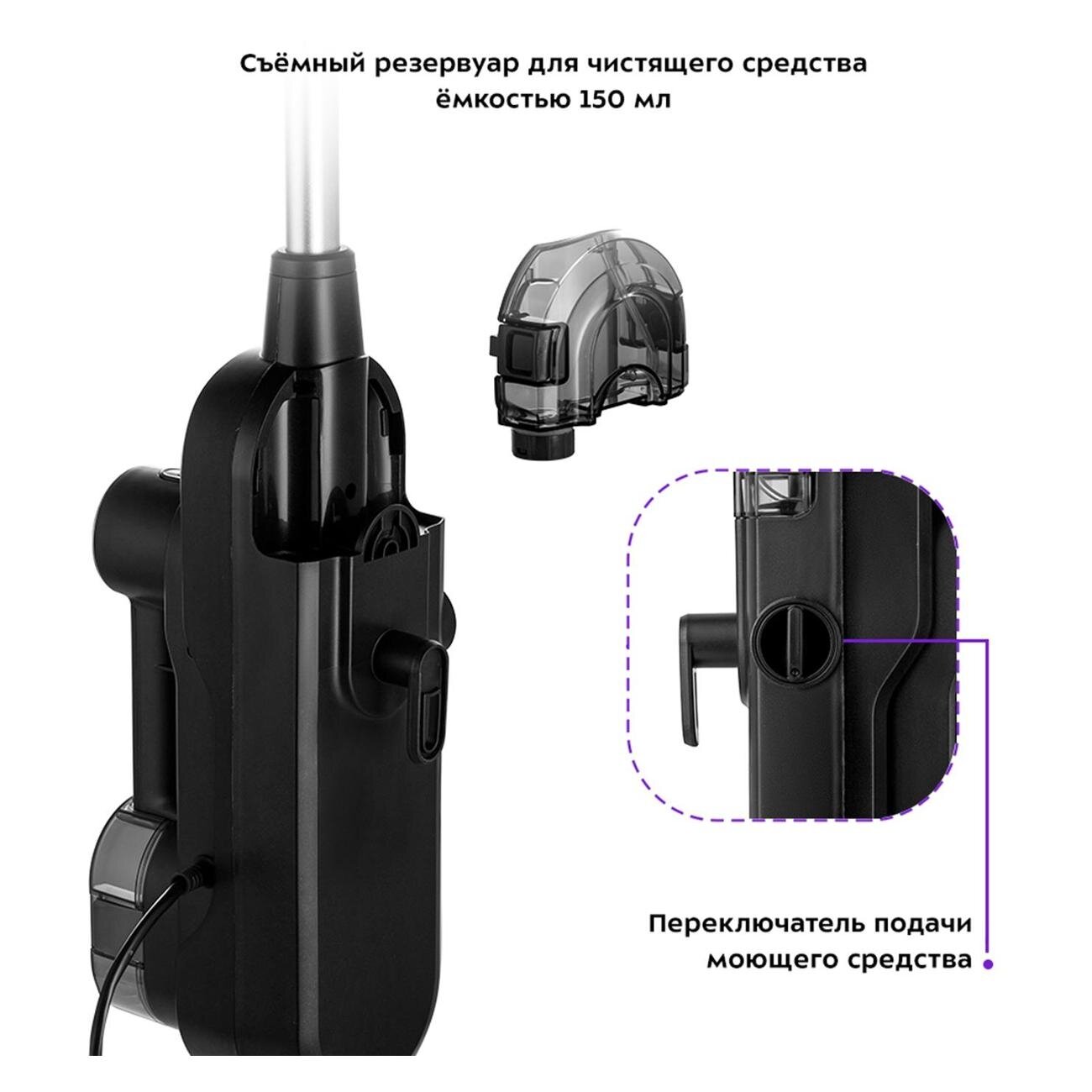 Паровая швабра KITFORT KT-1004-4, 1500 Вт, 1 бар, объем 0,35 л, белая/фиолетовая, КТ-1004-4