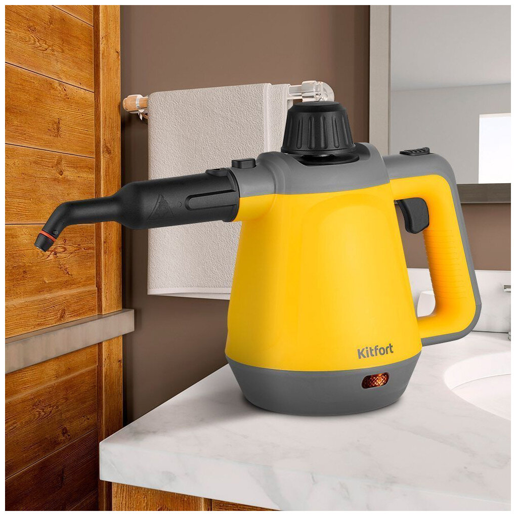 Пароочиститель KT-9170-3, 1050 Вт, 0.38 л, 30 г/мин, нагрев 3 мин, чёрно-желтый