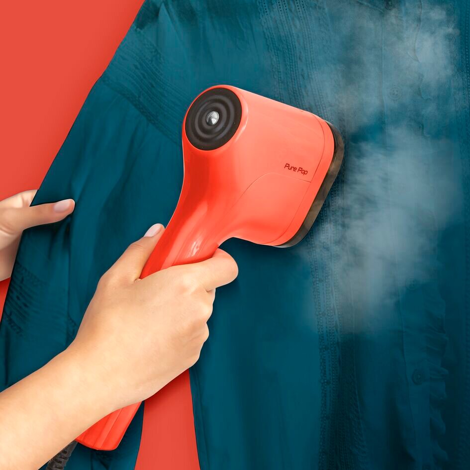 Ручной вертикальный отпариватель Tefal Pure Pop DT2022E1 с двухсторонней насадкой для деликатных тканей, 1300 Вт, красный