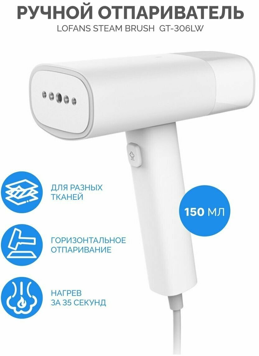 Отпариватель ручной Lofans, GT-306LW, мощность 1200 Вт, объем 0,15 л, белый