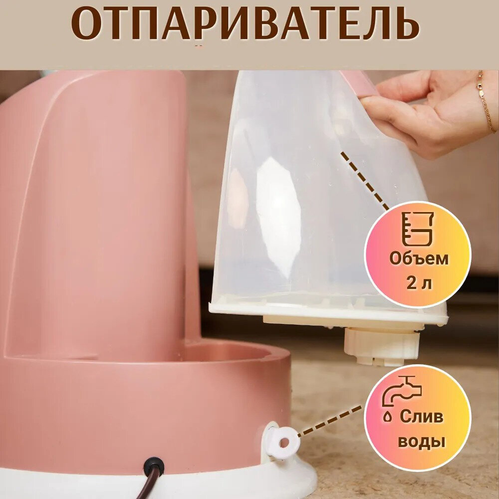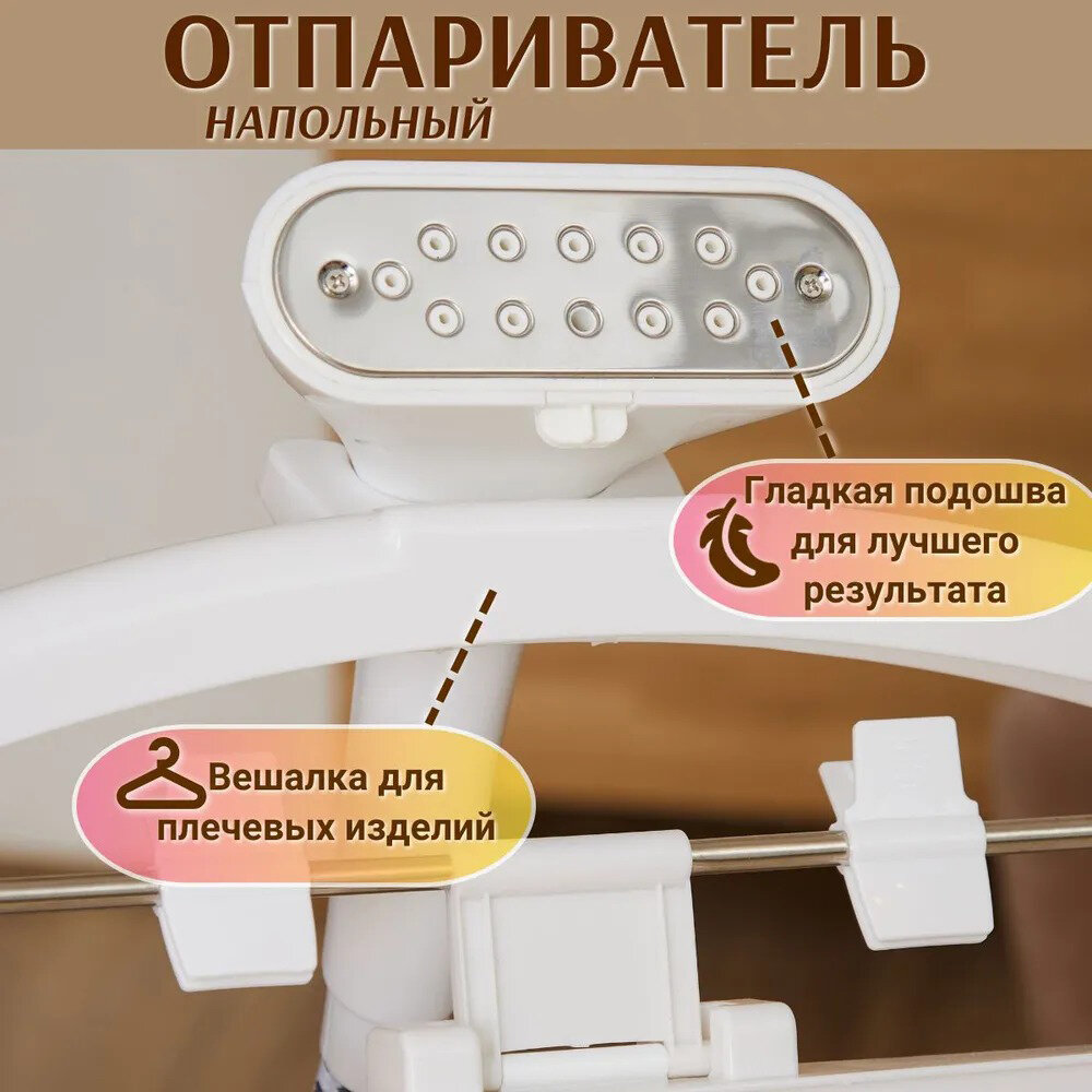 Отпариватель вертикальный, парогенератор напольный, для одежды/электрический,2.2л,2200Вт, регулировка подачи пара, бежевый, с вешалкой/плечиками интересное: