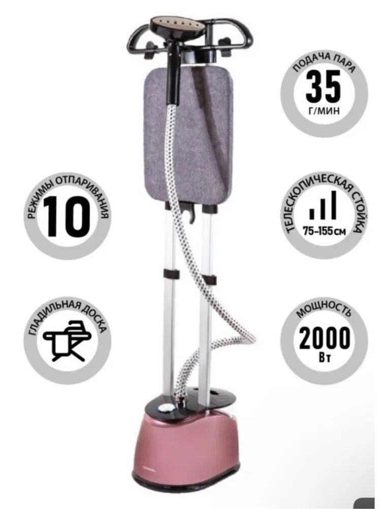 Купить Отпариватель вертикальный, напольный, отпариватель для одежды электрический,2.3л,2000Вт, регулировка подачи пара, розовый, с вешалкой, для дома