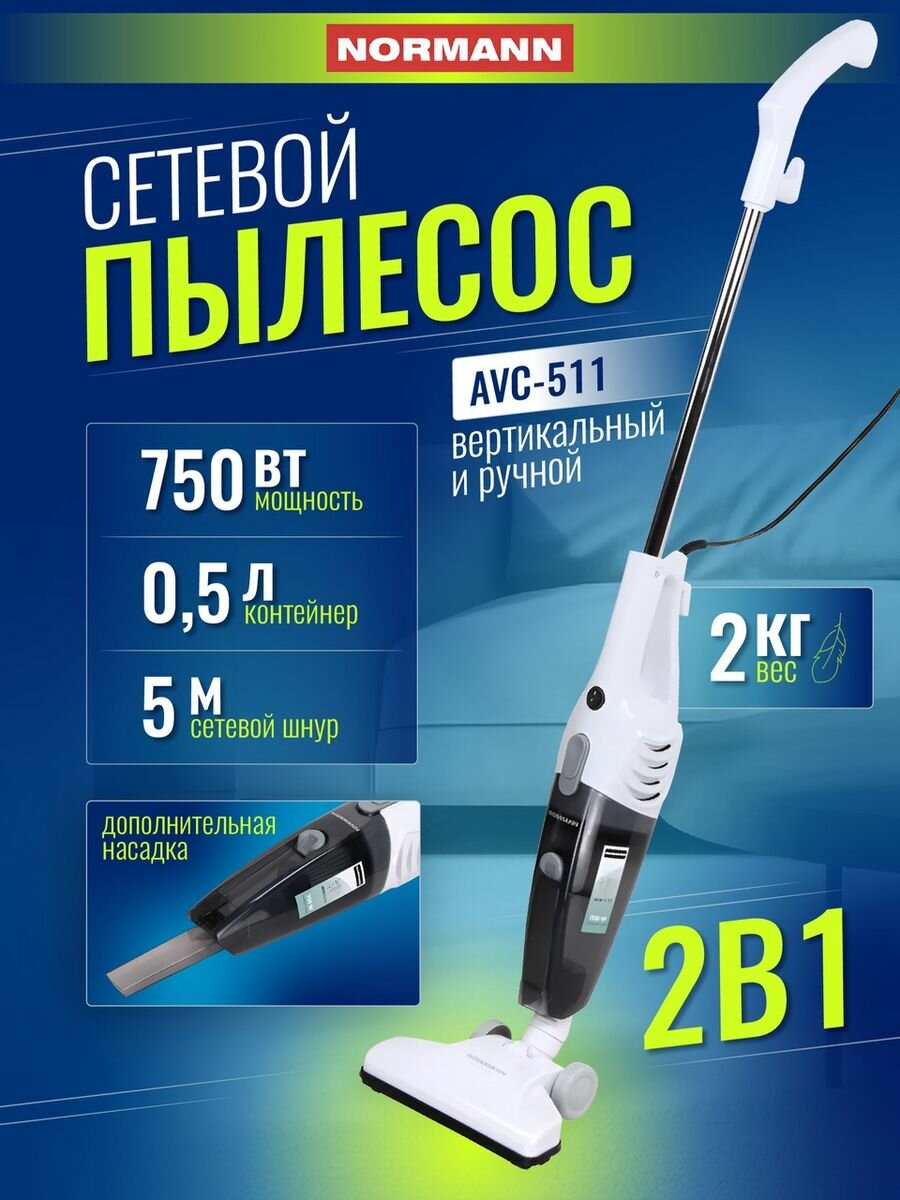 Пылесос бытовой NORMANN AVC-511 (700 Вт, Вертикальный, Пылесборник 0.8 л,) (N16012-1) интересное: