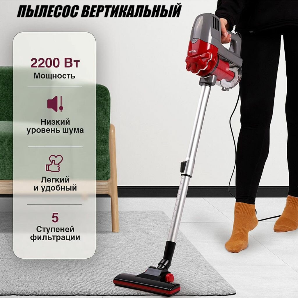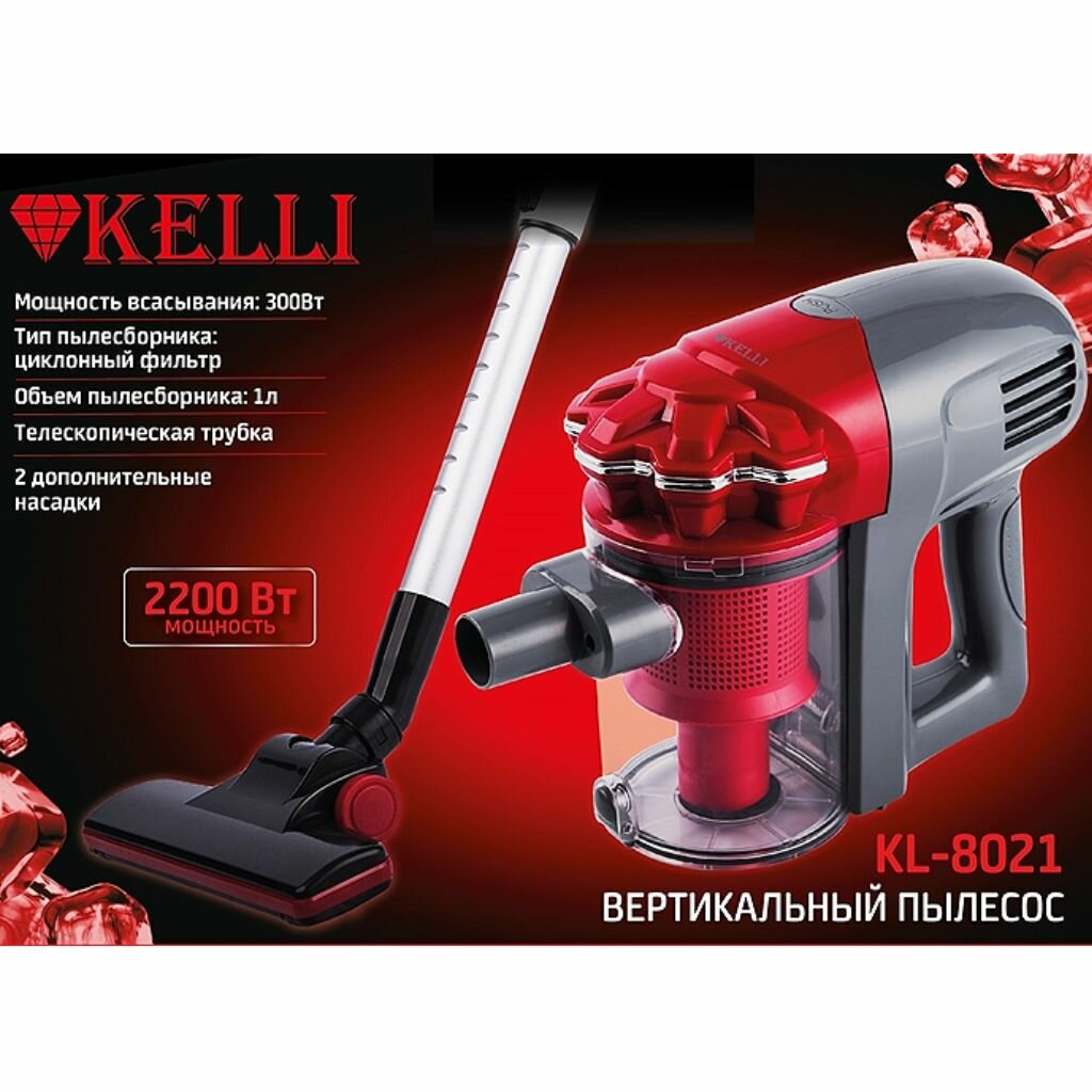 Пылесос KELLI KL-8021 красный циклонный вертикальный проводной мощный, 2200 Вт (OL) интересное: