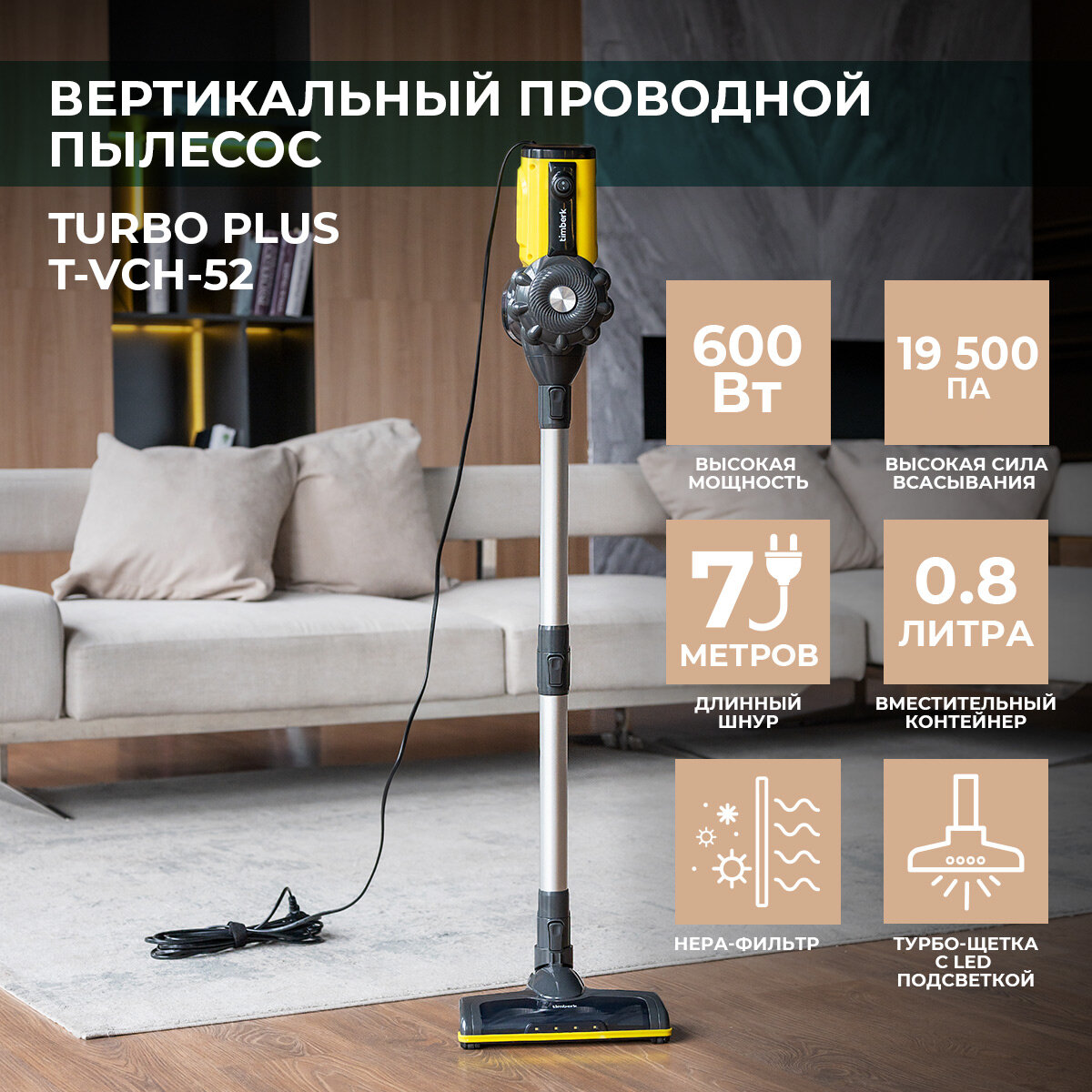 Вертикальный пылесос Timberk T-VCH-52 интересное: