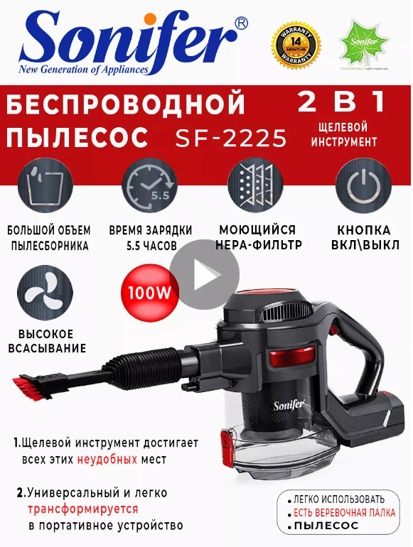 | Дополнительная информация | Вертикальный моющий беспроводной пылесос |