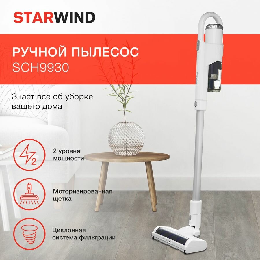 Ручной пылесос (handstick) StarWind SCH9930, 150Вт, белый интересное: