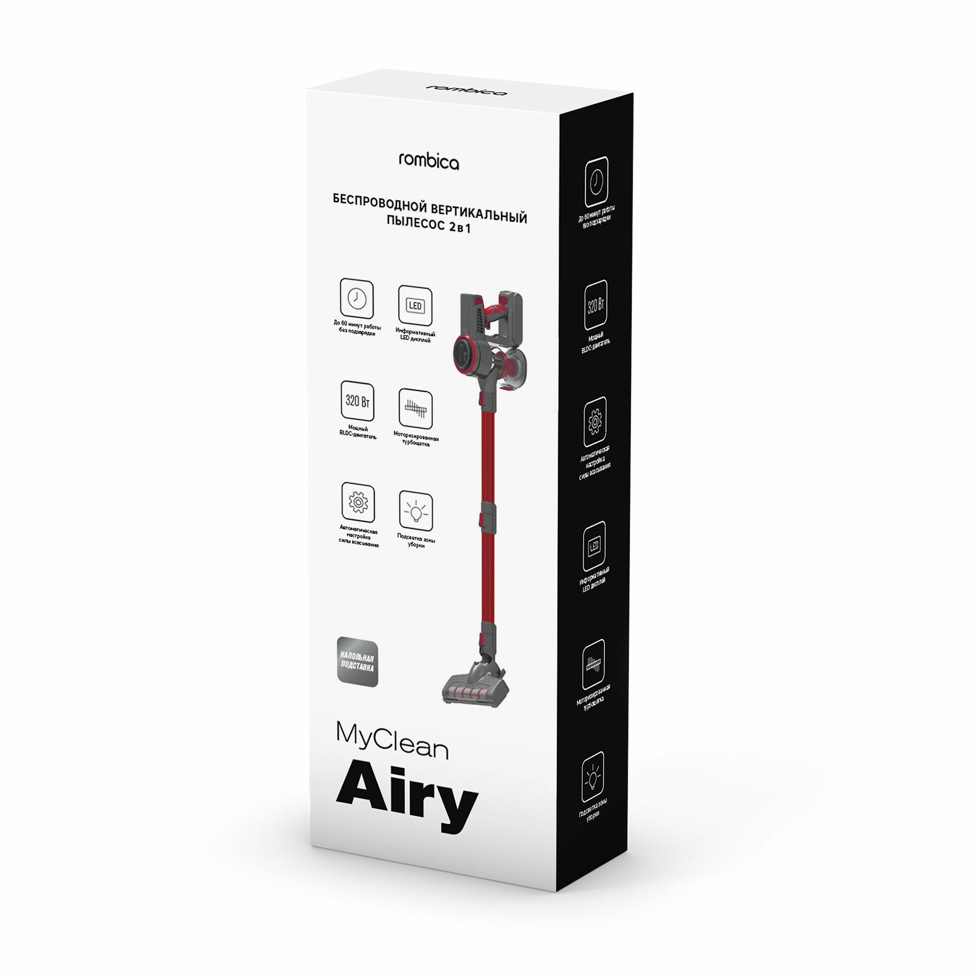 Пылесос беспроводной вертикальный 2 в 1 Rombica MyClean Airy, красный/серый