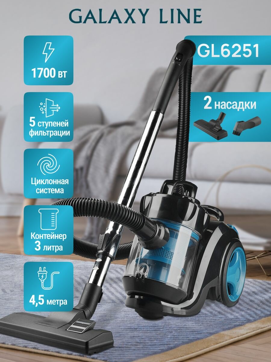 Пылесос для дома с контейнером мощный LINE GL 6251, 1700 Вт интересное: