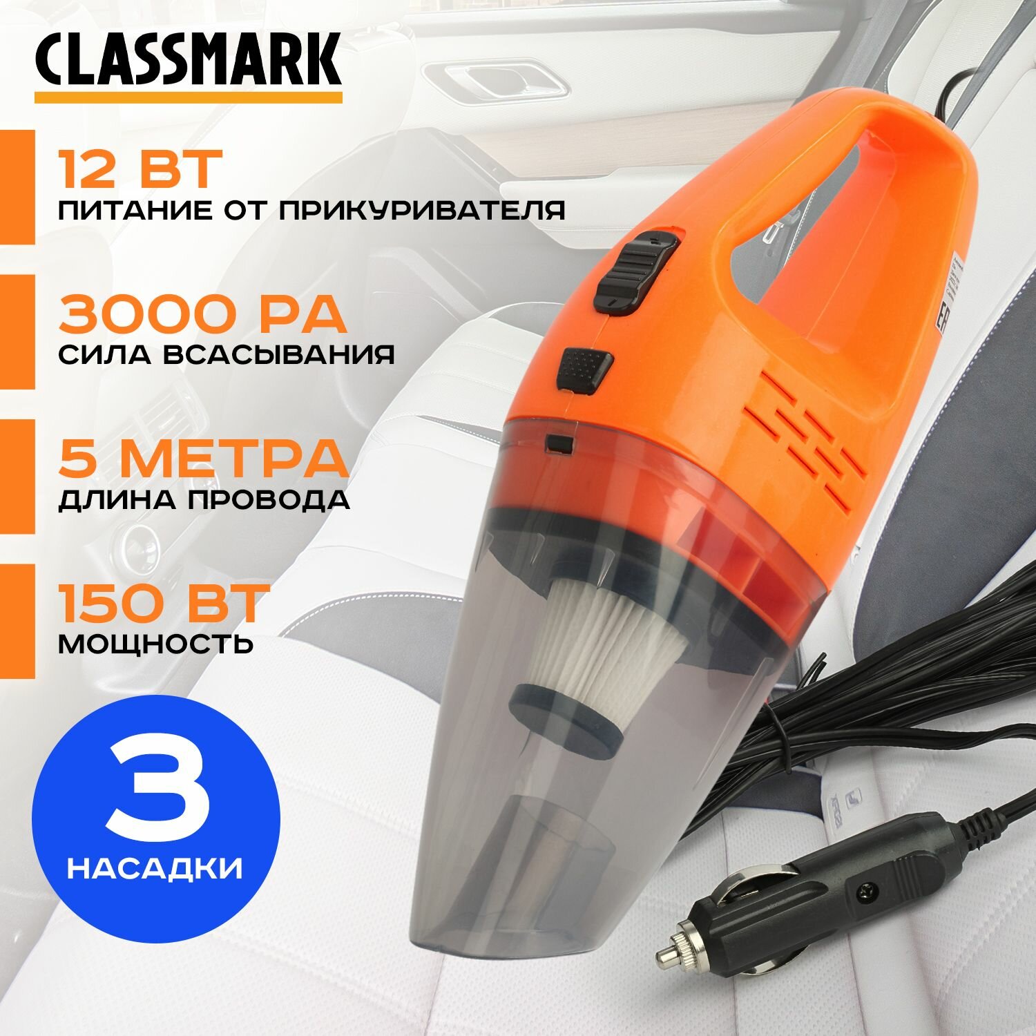 Автомобильный пылесос Classmark от прикуривателя проводной в машину интересное: