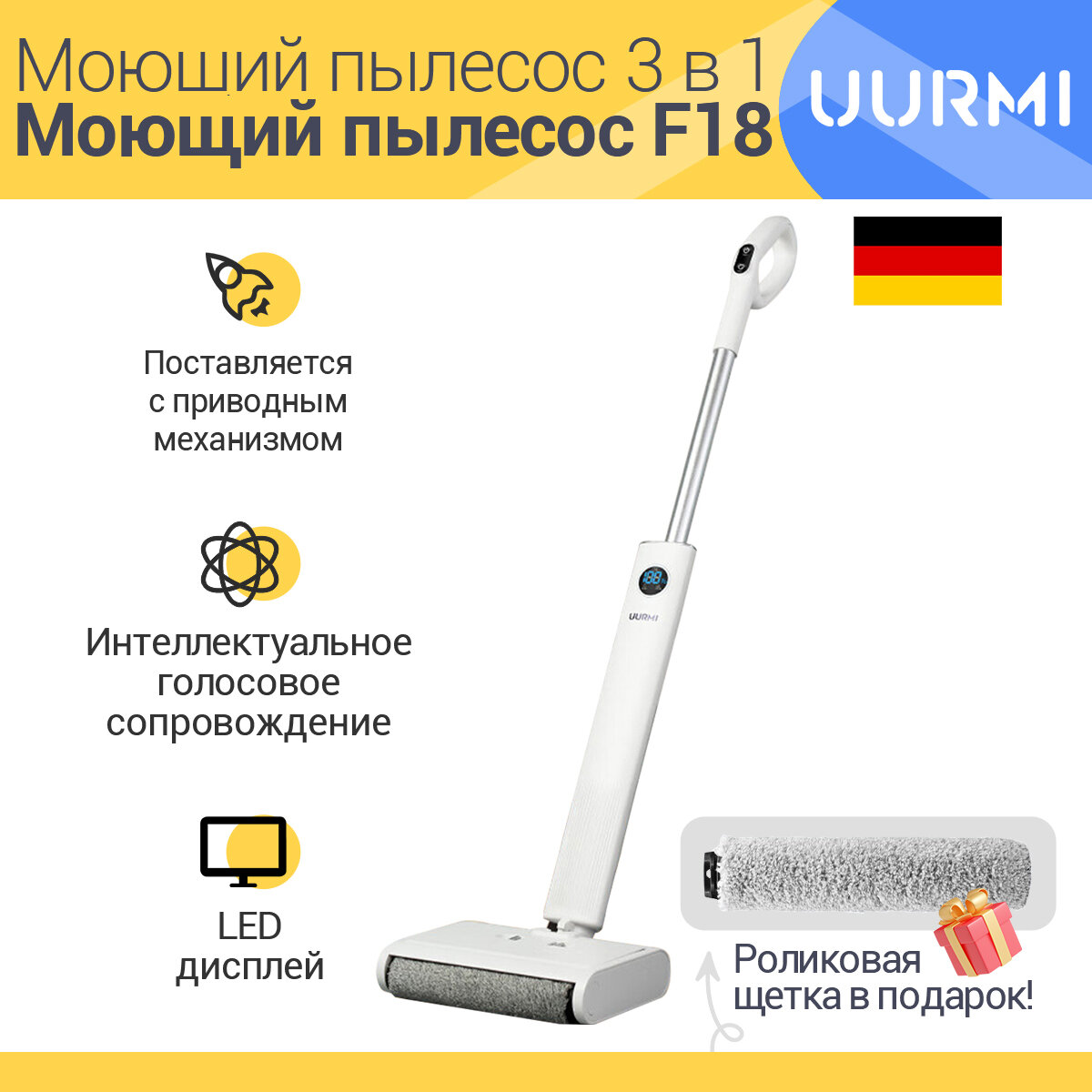 Пылесос моющий беспроводной UURMI F18, Самоочистка,с влажной уборкой, Наклон на 180° интересное: