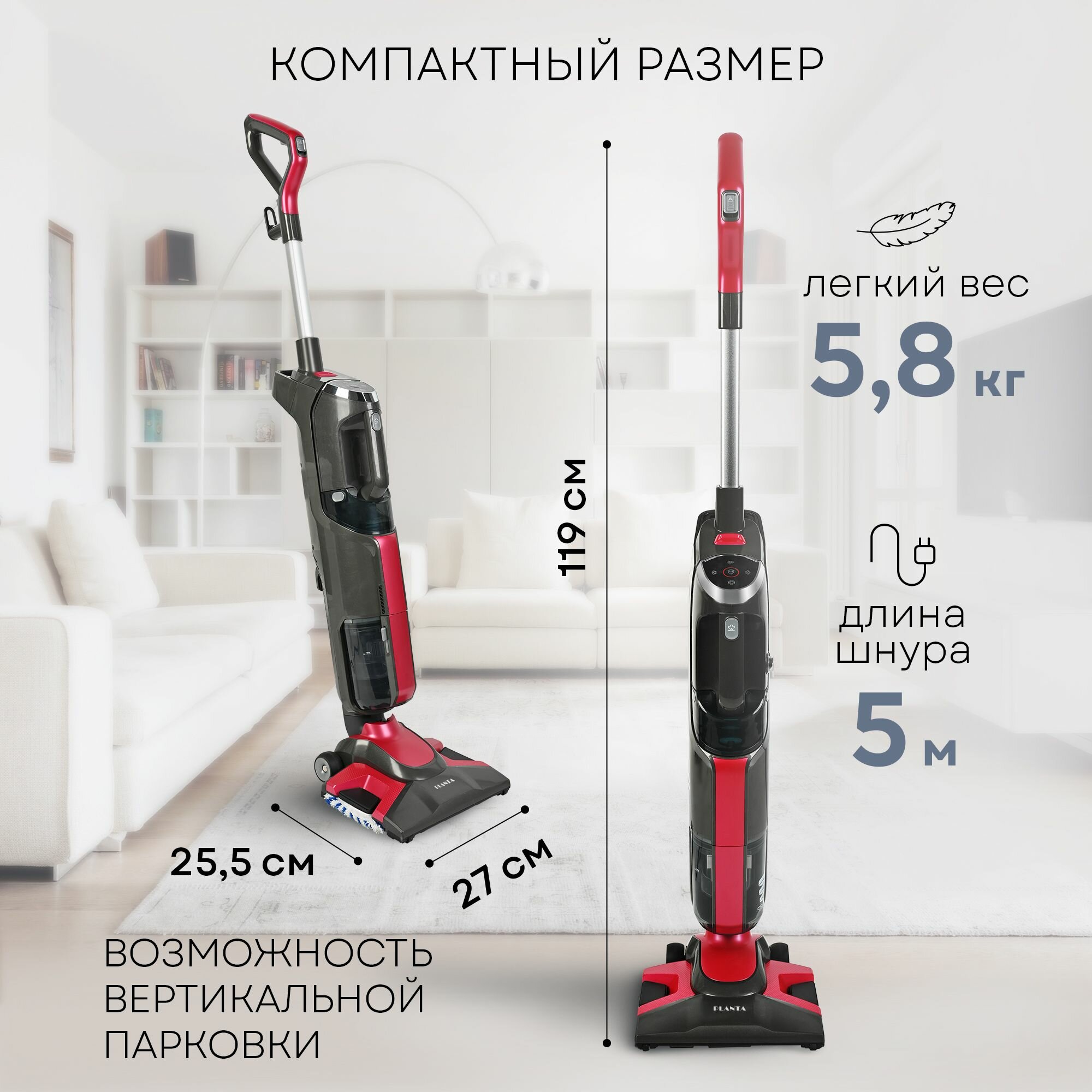 PLANTA Вертикальный паровой пылесос 6 в 1 PL-SC301, сухая и влажная уборка, пылесос и ручной пароочиститель интересное: