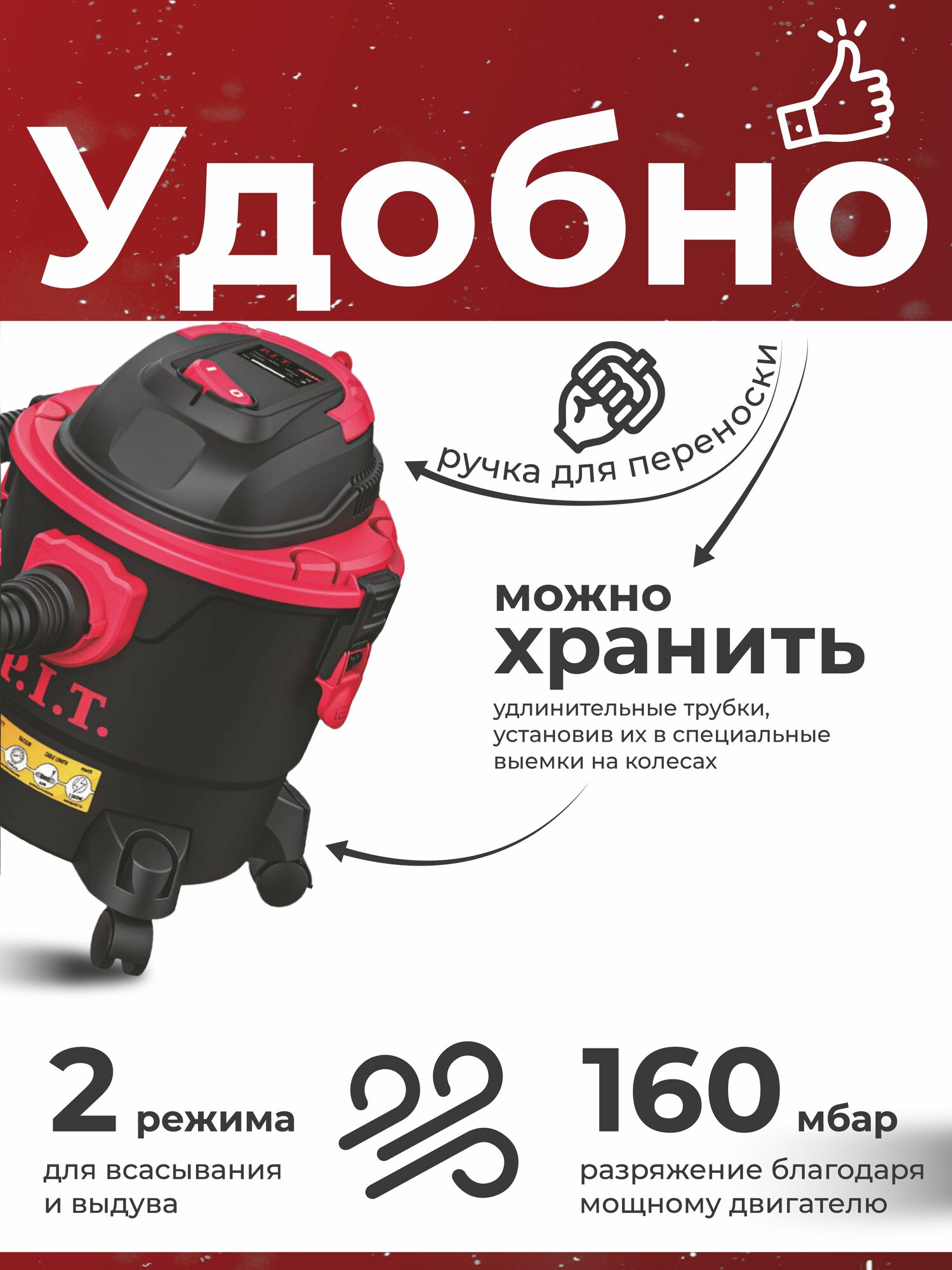 Ниже Вы можете прочитать отзывы на Строительный пылесос PIT PVC15C, ознакомится с подробными характеристиками, посмотреть интересные обзоры и фотографии на Строительный пылесос PIT PVC15C.