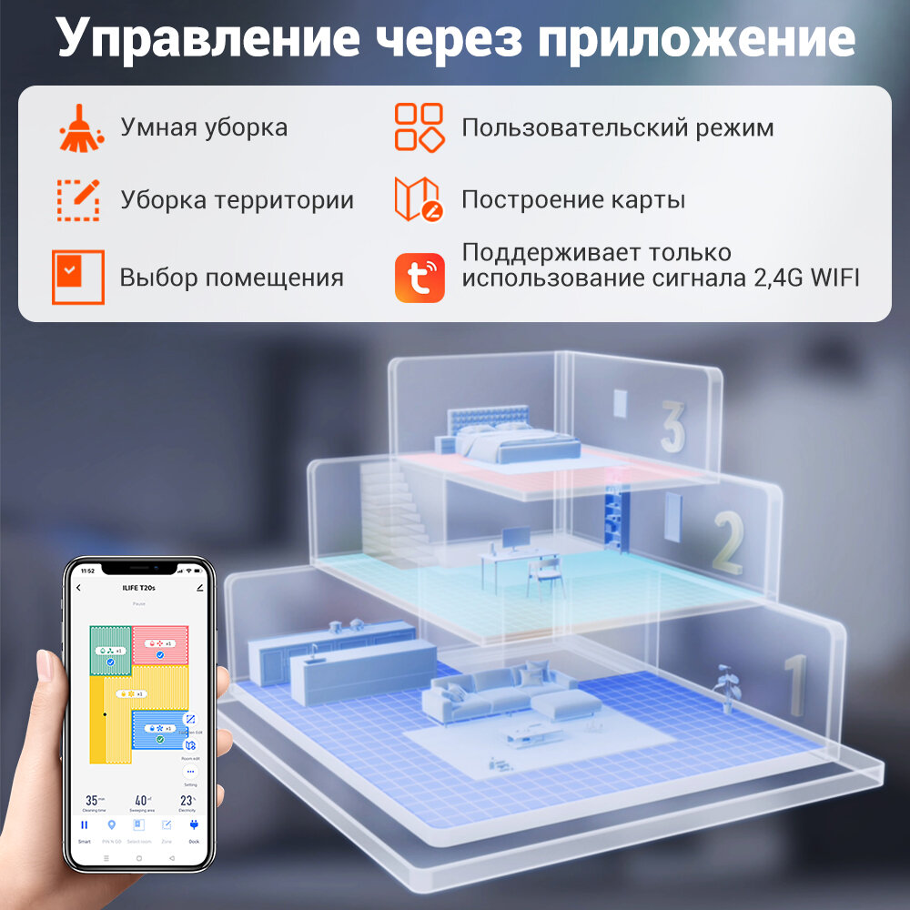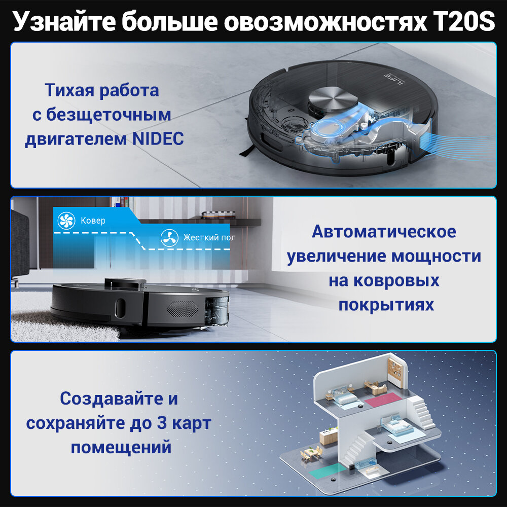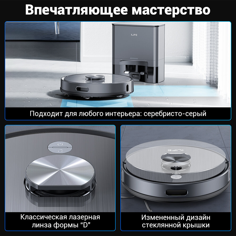 Робот пылесос с влажной и сухой уборкой ILIFE T20S, с лазерной навигацией LDS и станцией самоочистки, 5000 Па, управление с помощью приложения интересное: