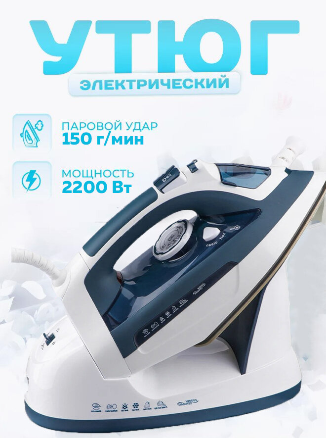 Беспроводной Утюг 2 в 1/электрический/с антипригарным покрытием/с функцией вертикальной глажки/паровой удар/система самоочистки/2200Вт/домашний интересное:
