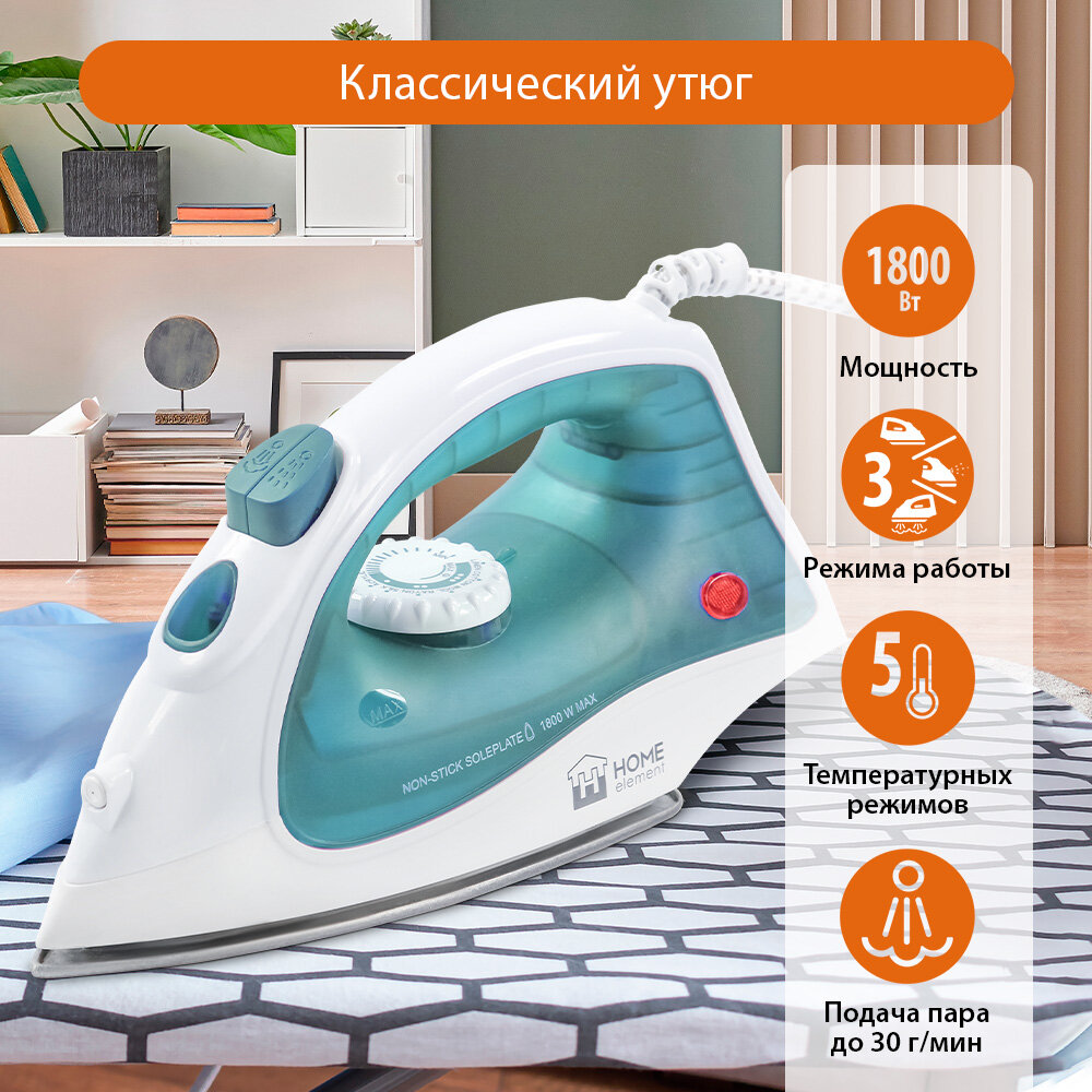 Утюг HOME ELEMENT HE-IR217 голубая бирюза интересное: