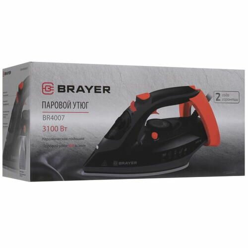 Утюг BRAYER 4007BR, 3100 Вт, керамическая подошва, 35 г/мин, 265 мл, чёрно-красный