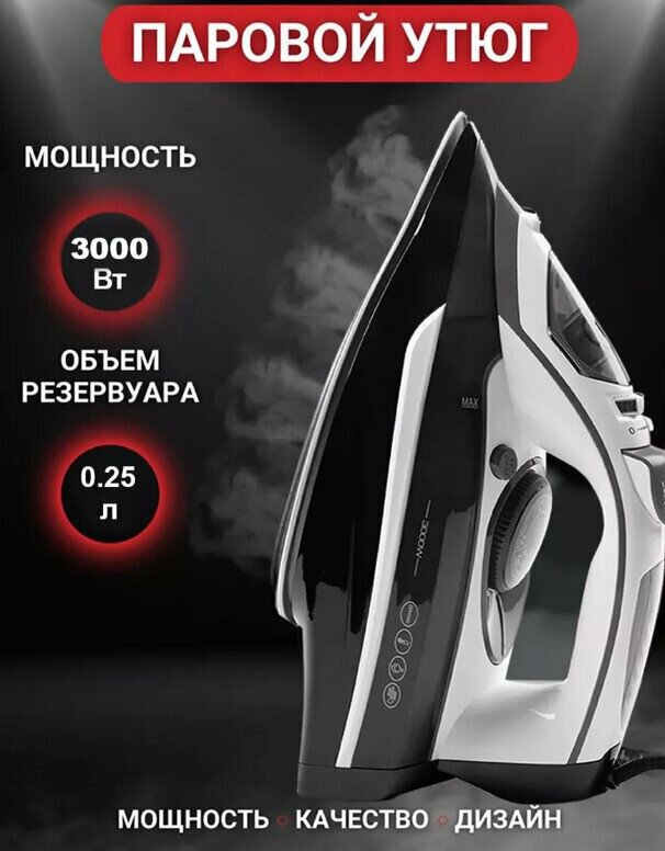 Утюг домашний, паровой утюг, керамика, 3000W, вертикальный пар, автоотключение, шаровое крепление