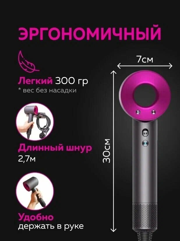 Профессиональный фен для волос с 5 насадками и шнуром длиной 2,7 метра
