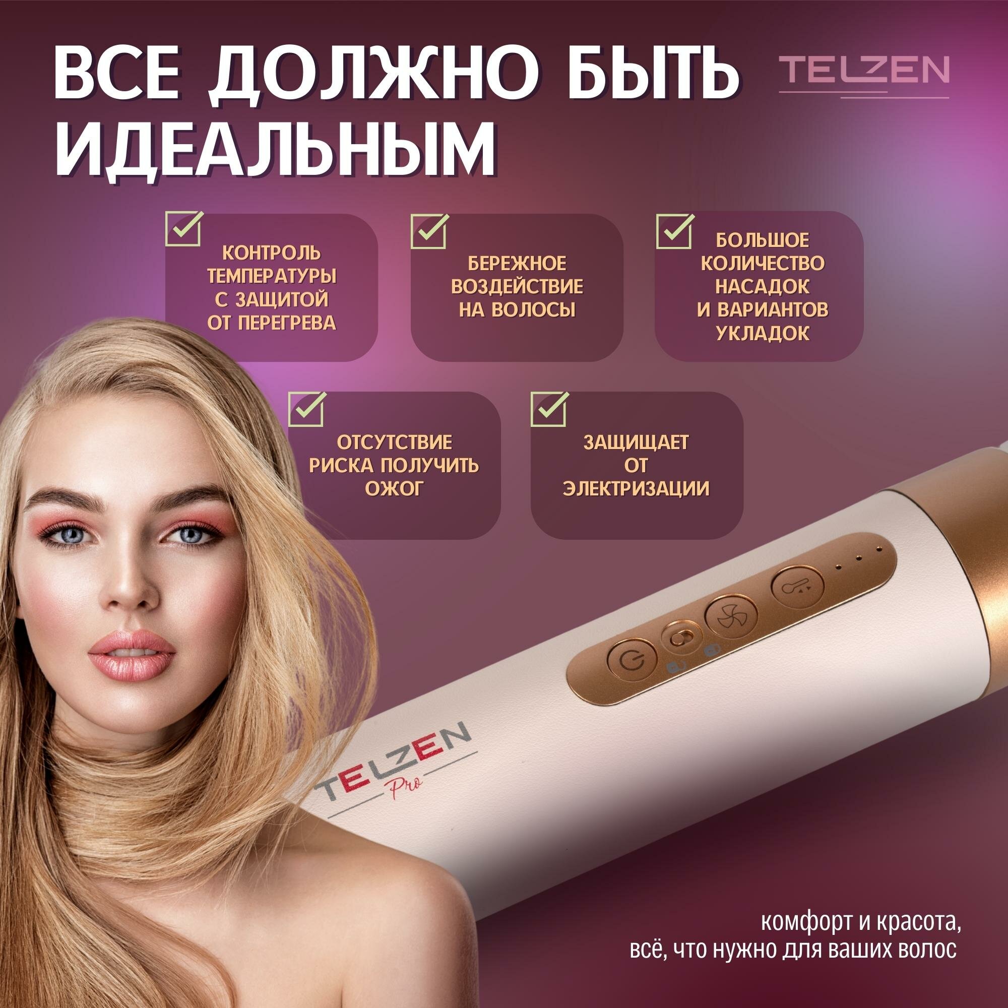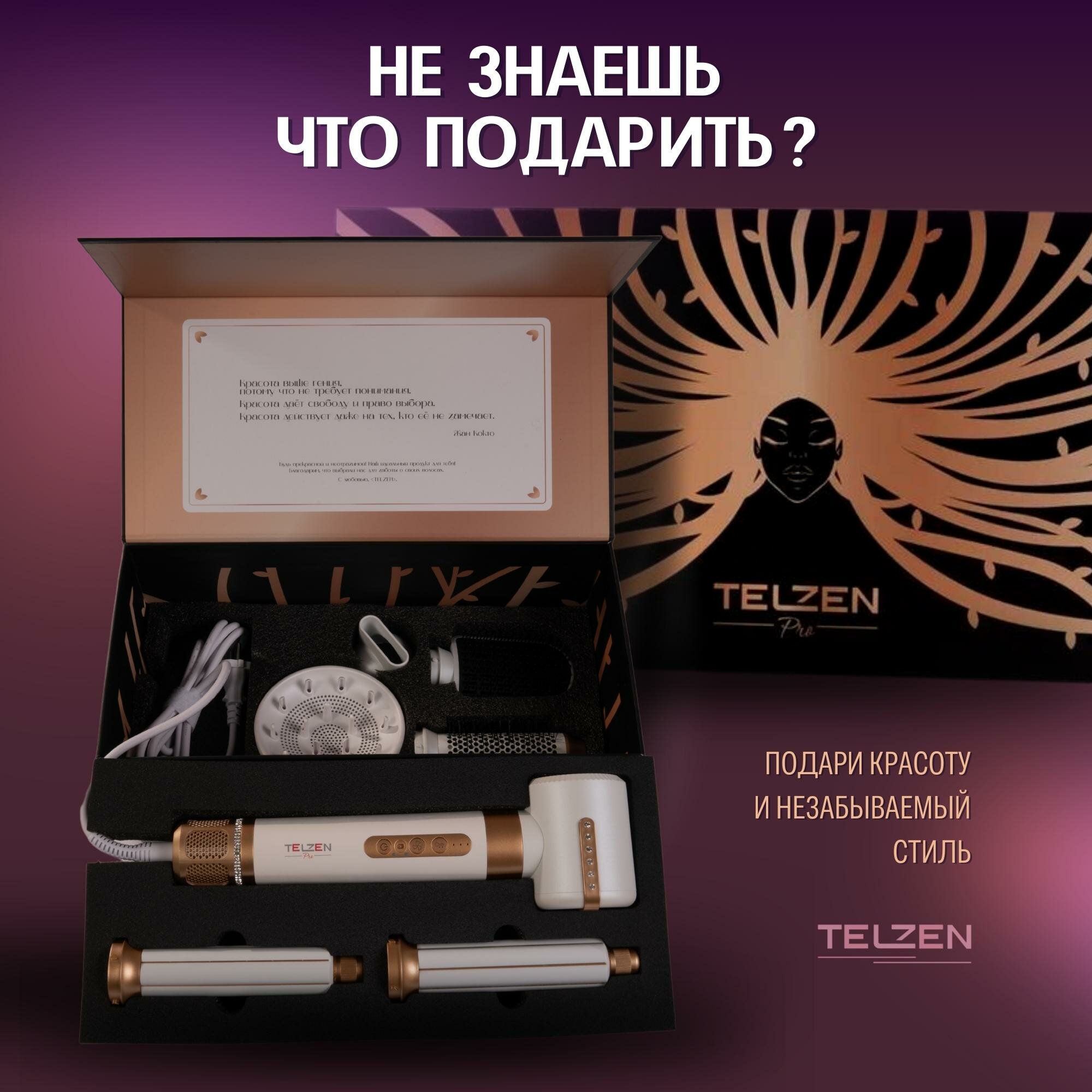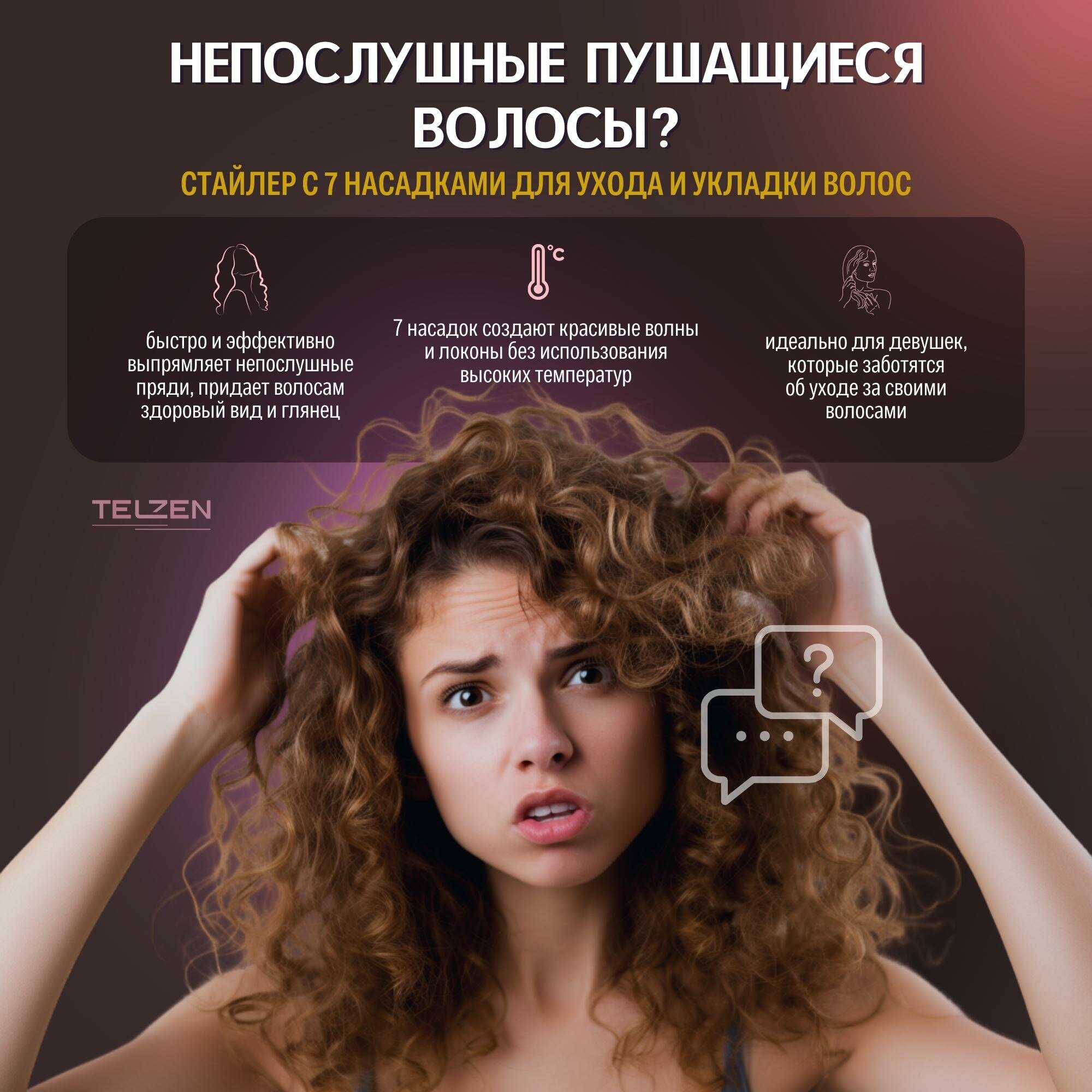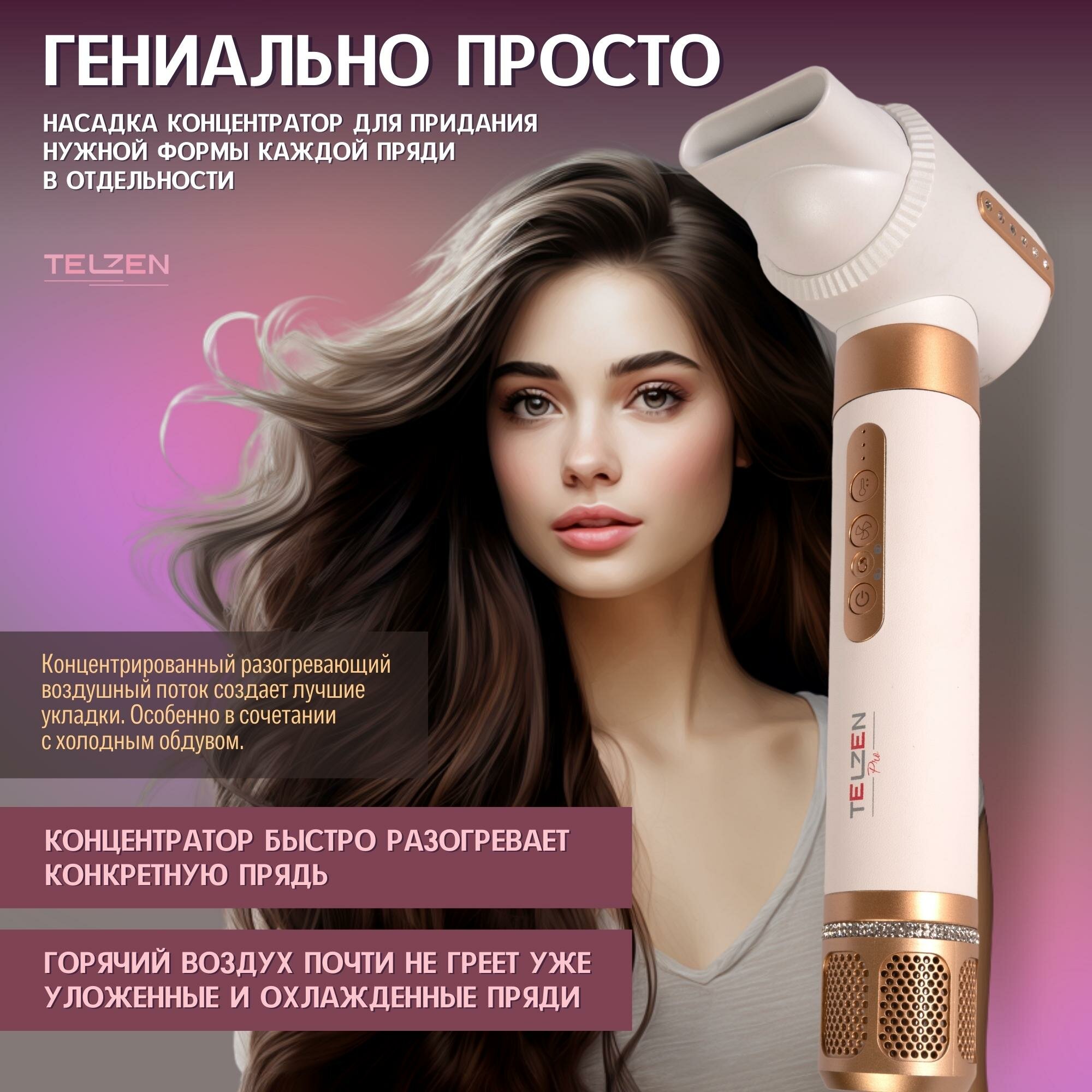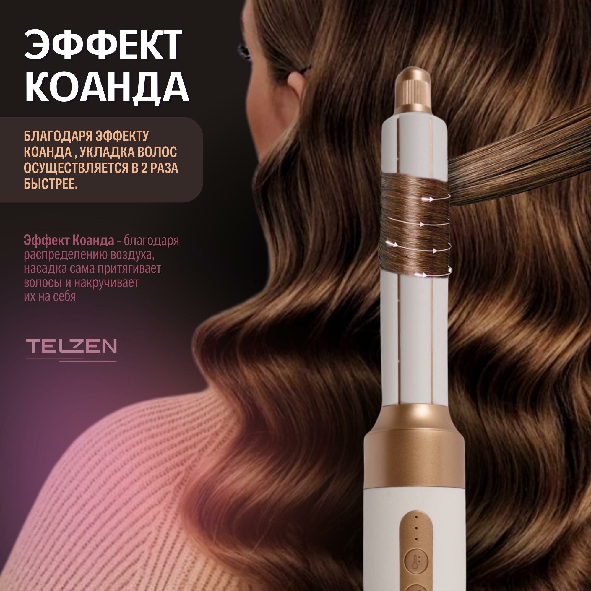 Фен для волос мультистайлер 7 в 1 Telzen с насадками профессиональный, стайлер для завивки и укладки белый интересное: