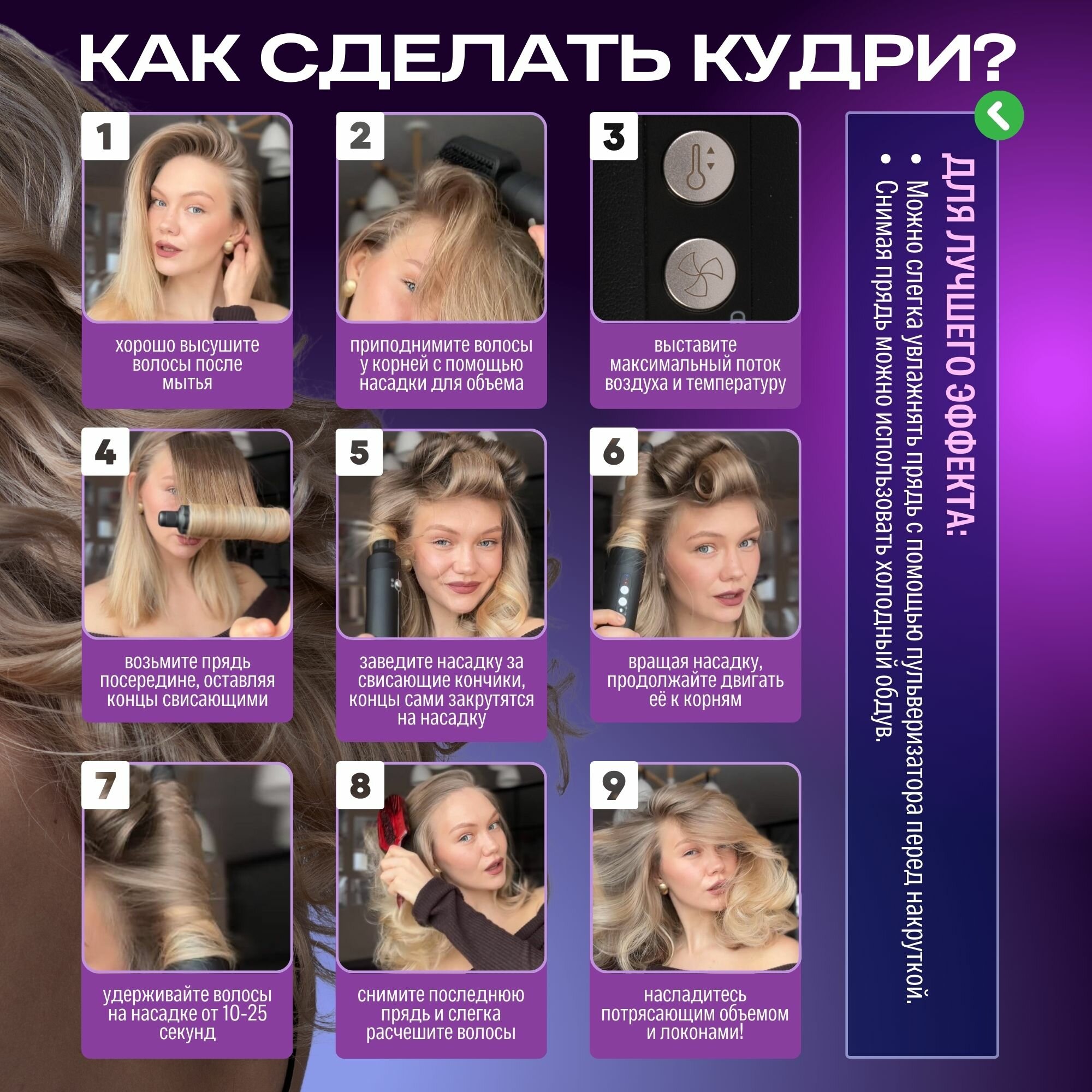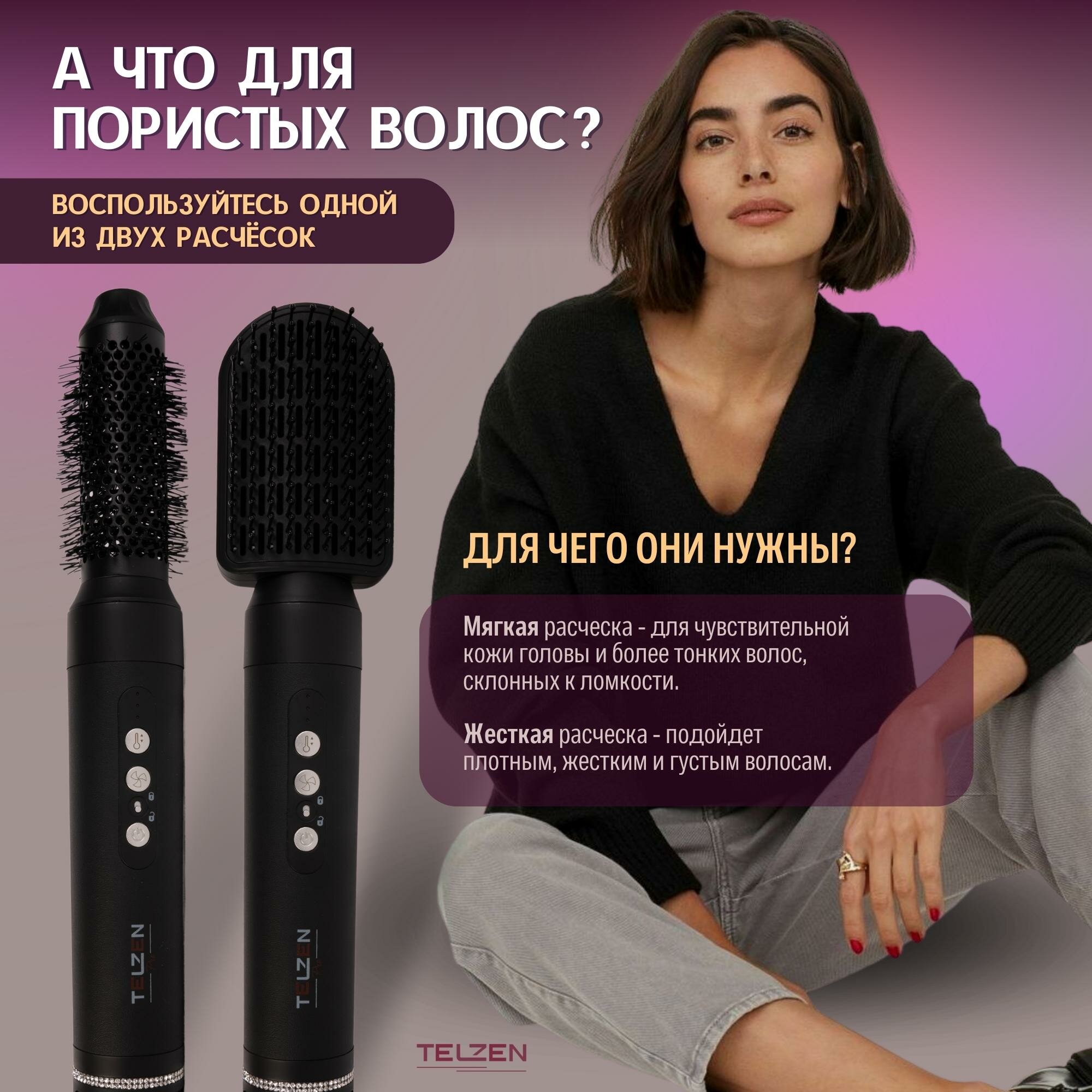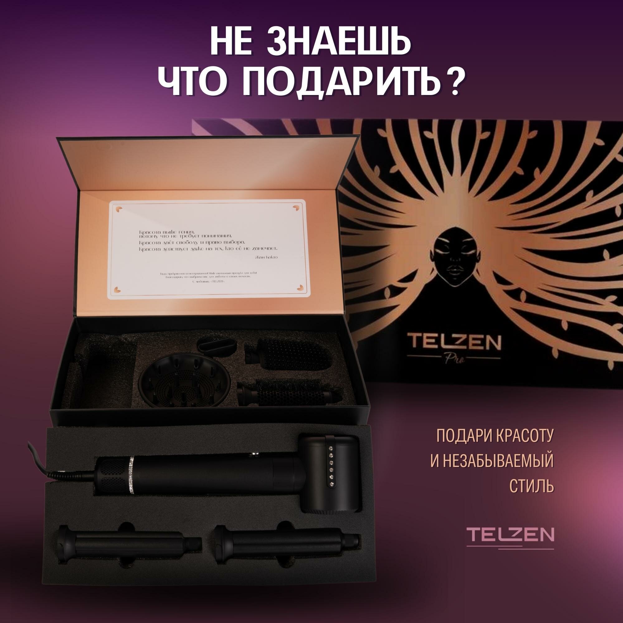 Фен мультистайлер для волос TELZEN профессиональный с насадками 7 в 1, стайлер для завивки, укладки черный интересное: