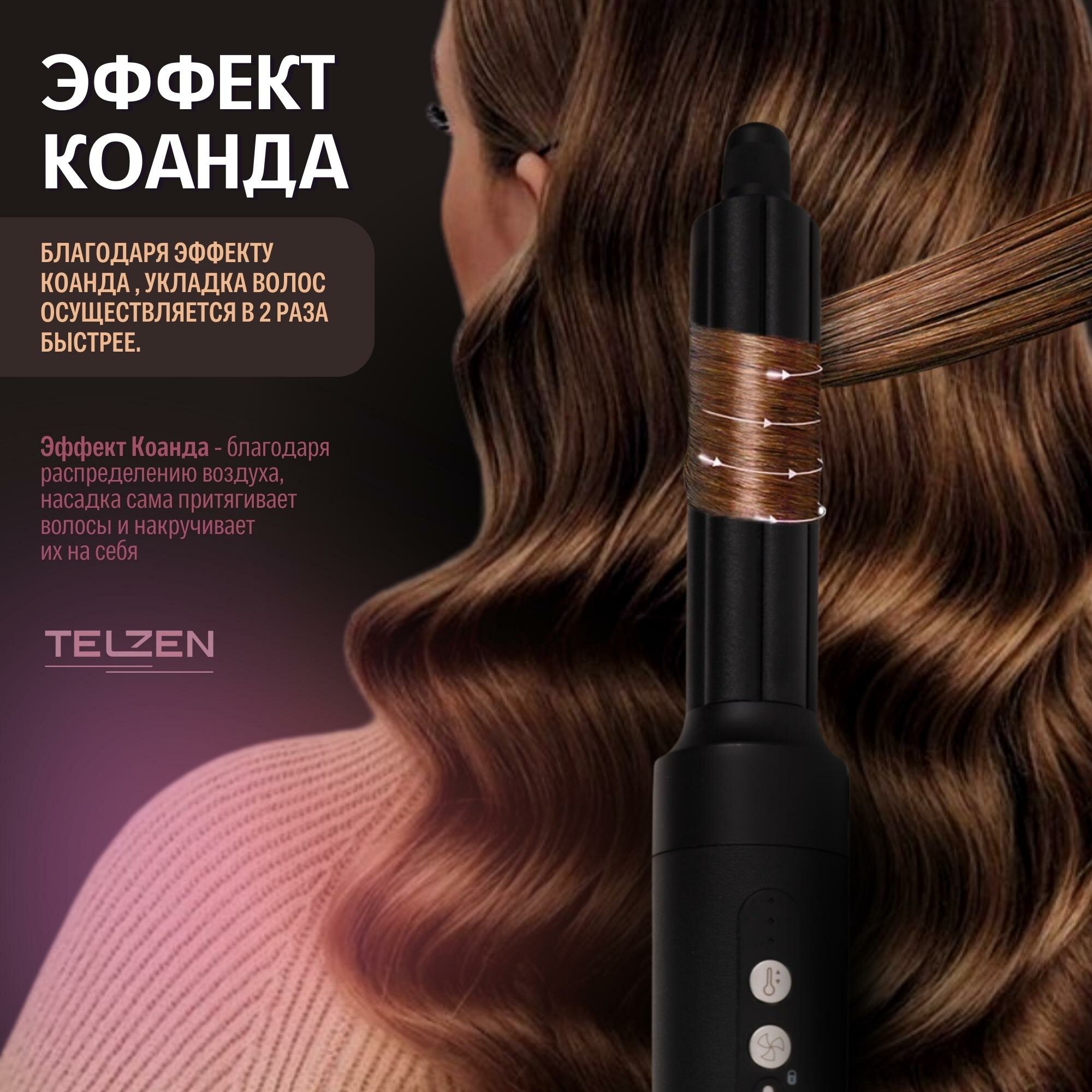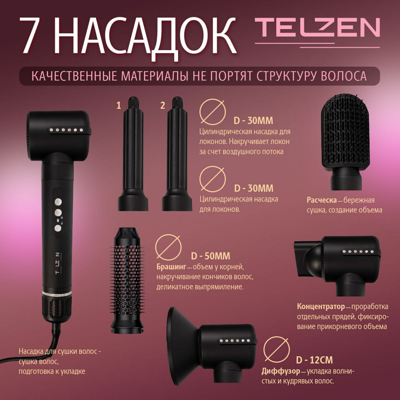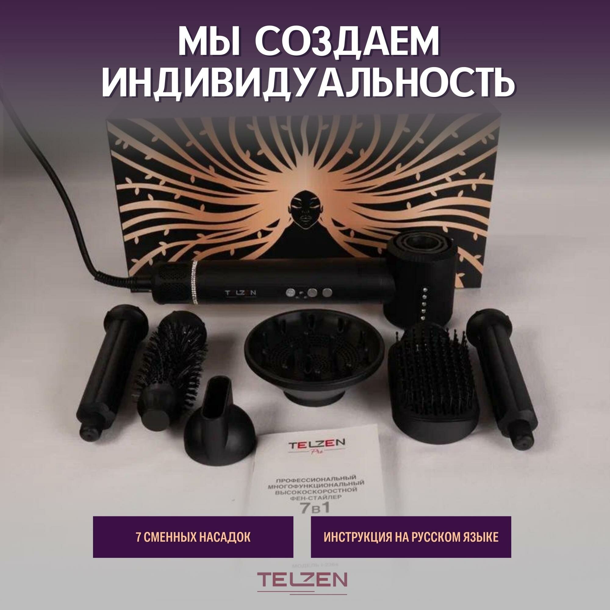 Купить Фен мультистайлер для волос TELZEN профессиональный с насадками 7 в 1, стайлер для завивки, укладки черный