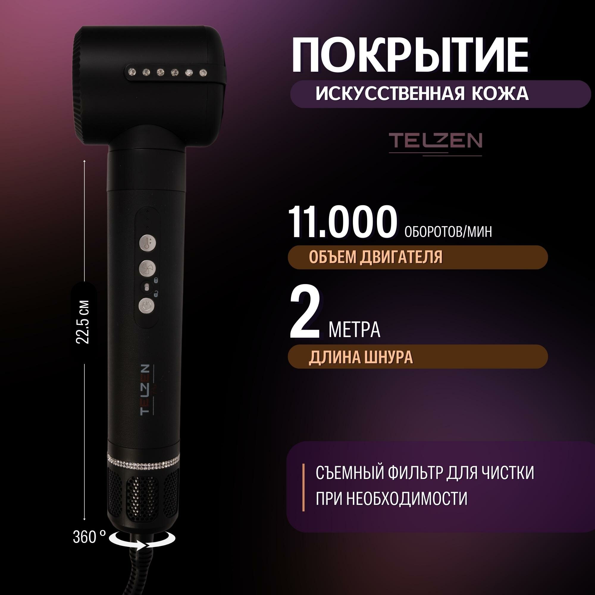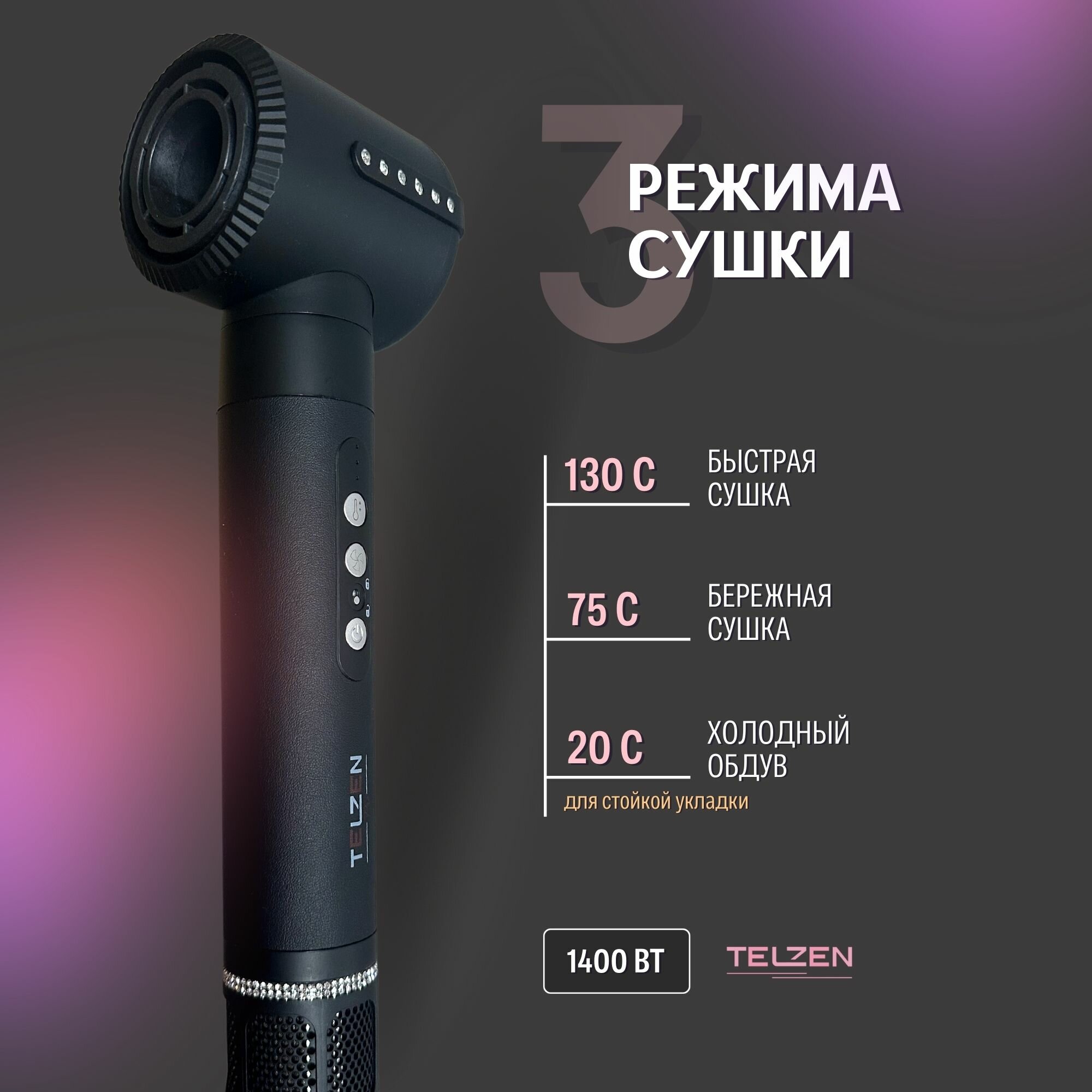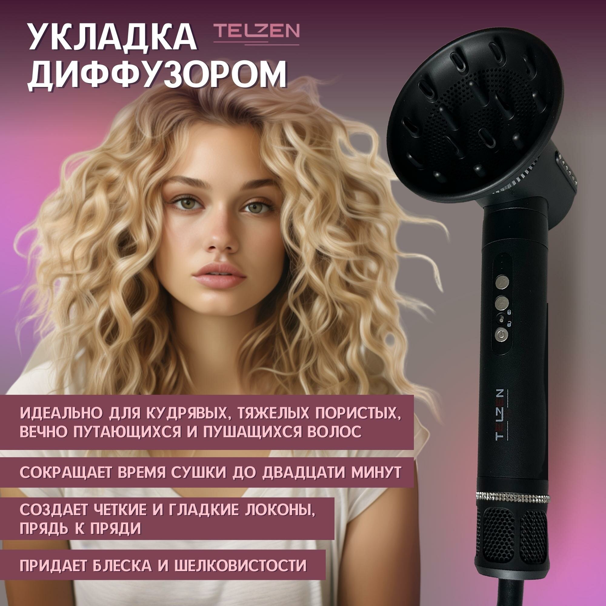 Купить Фен мультистайлер для волос TELZEN профессиональный с насадками 7 в 1, стайлер для завивки, укладки черный