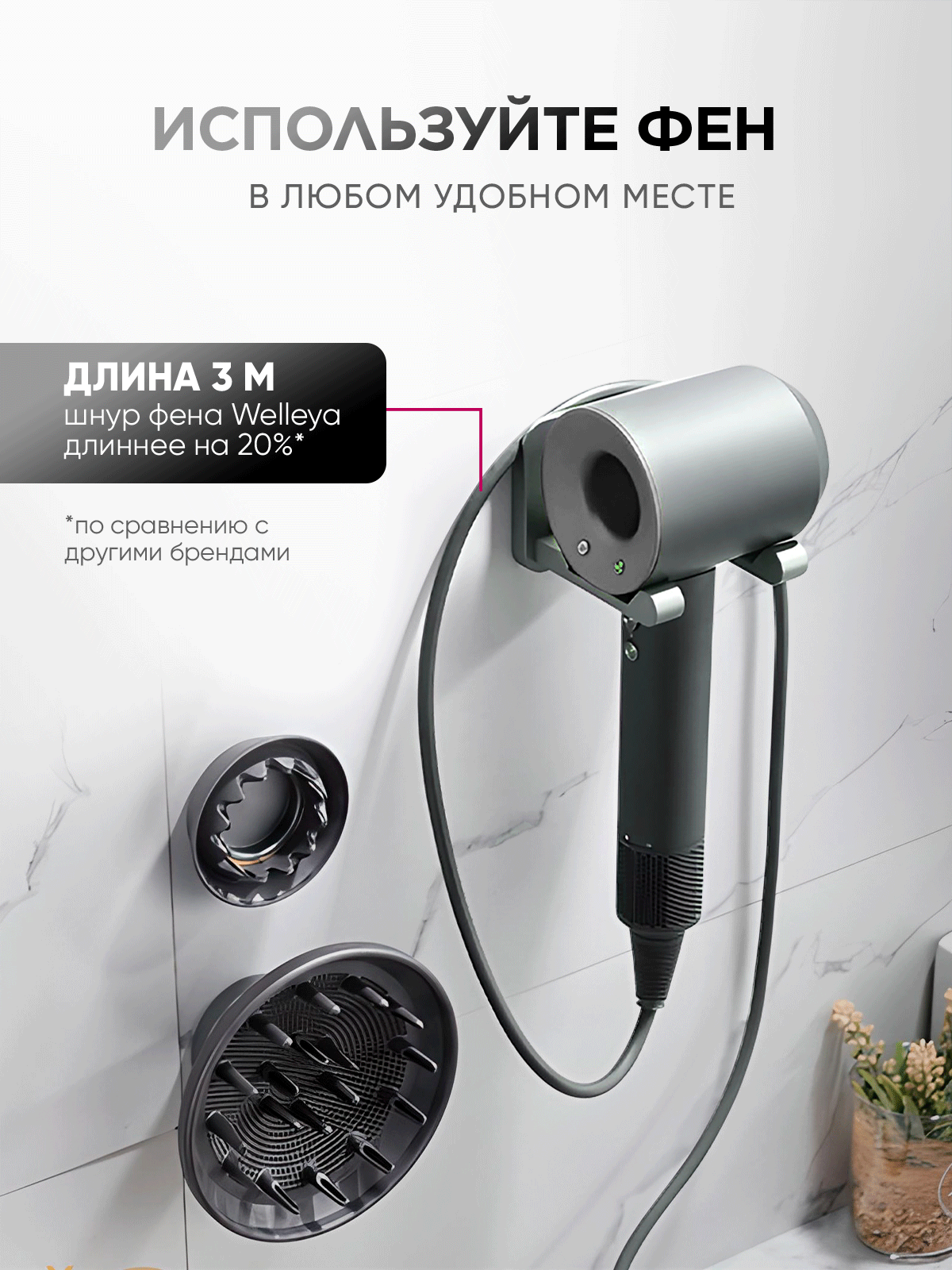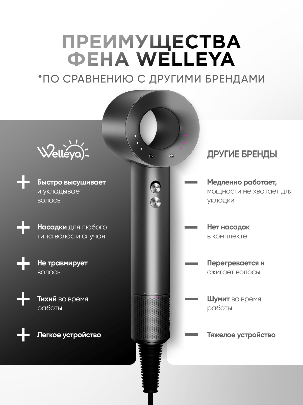 Фен Welleya, 5 в 1, профессиональный, мощность 2500 Вт, 4 температурных режима