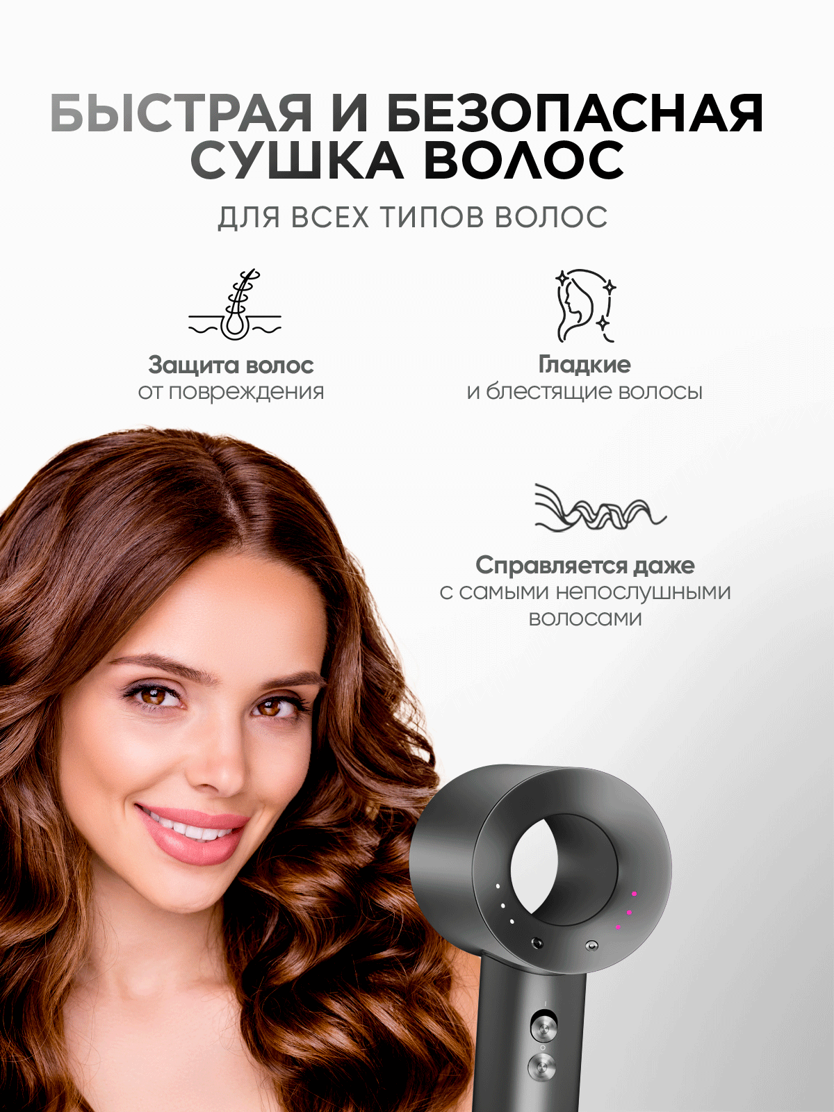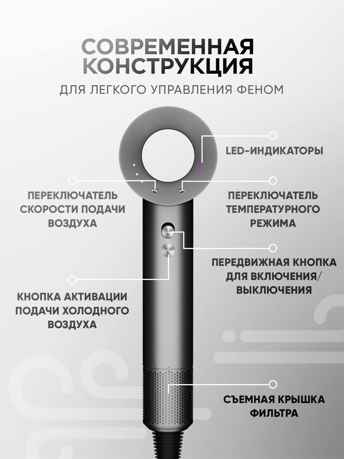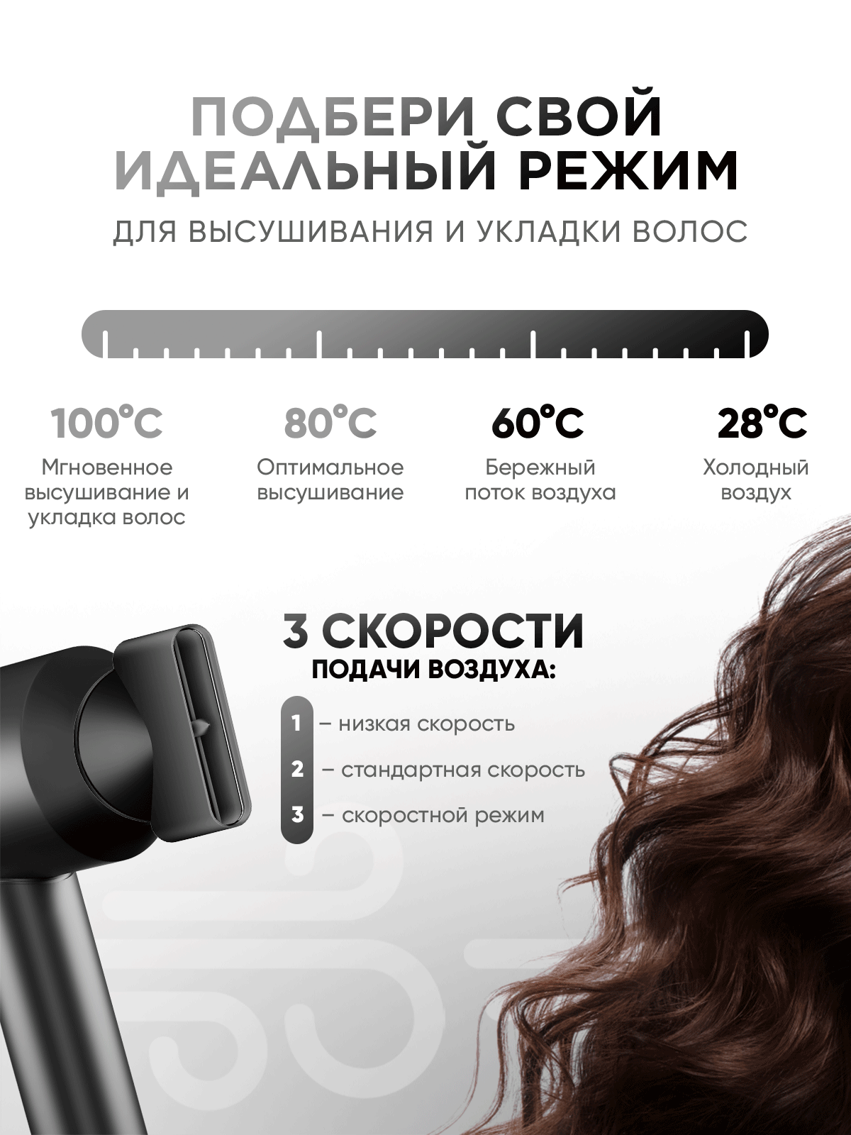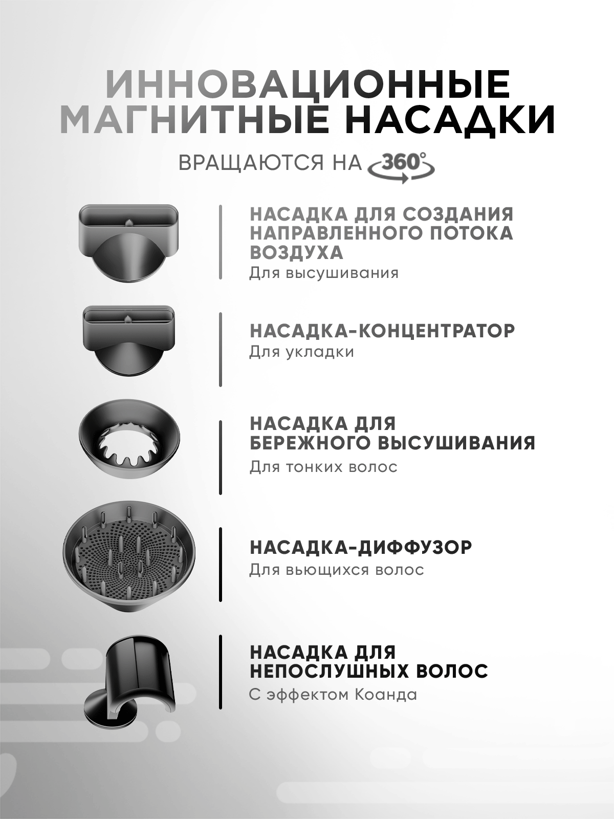 | Насадки | активный диффузор / диффузор / для бережного высушивания / для выпрямления / концентратор / направленный поток |