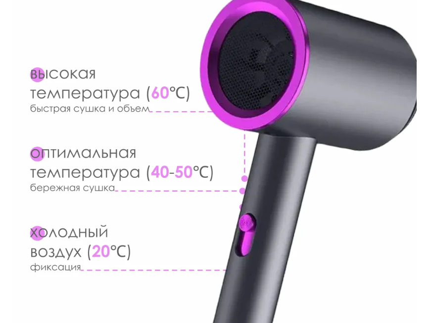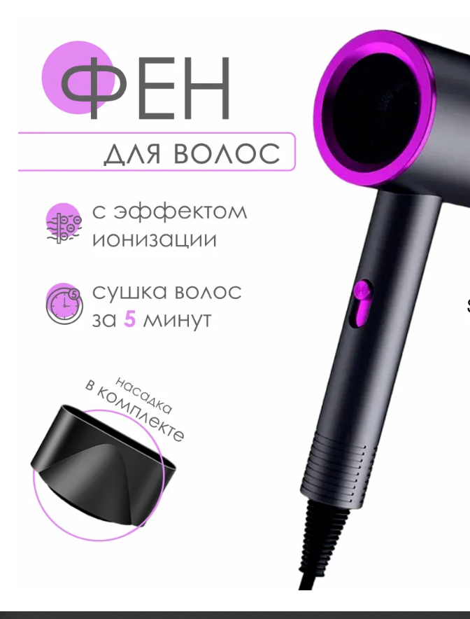 Фен для волос SimpleShop с ионизацией, черный для сушки и укладки интересное:
