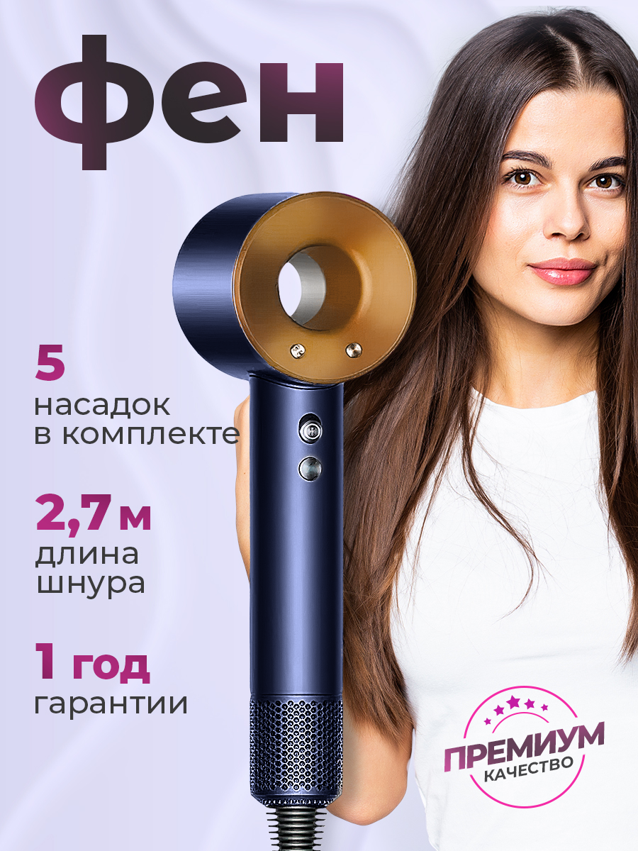 Профессиональный фен для волос iHair-1600 Super Hair Dryer 1600 Вт, 3 режима, 5 магнитных насадок, ионизация воздуха, фиолетовый