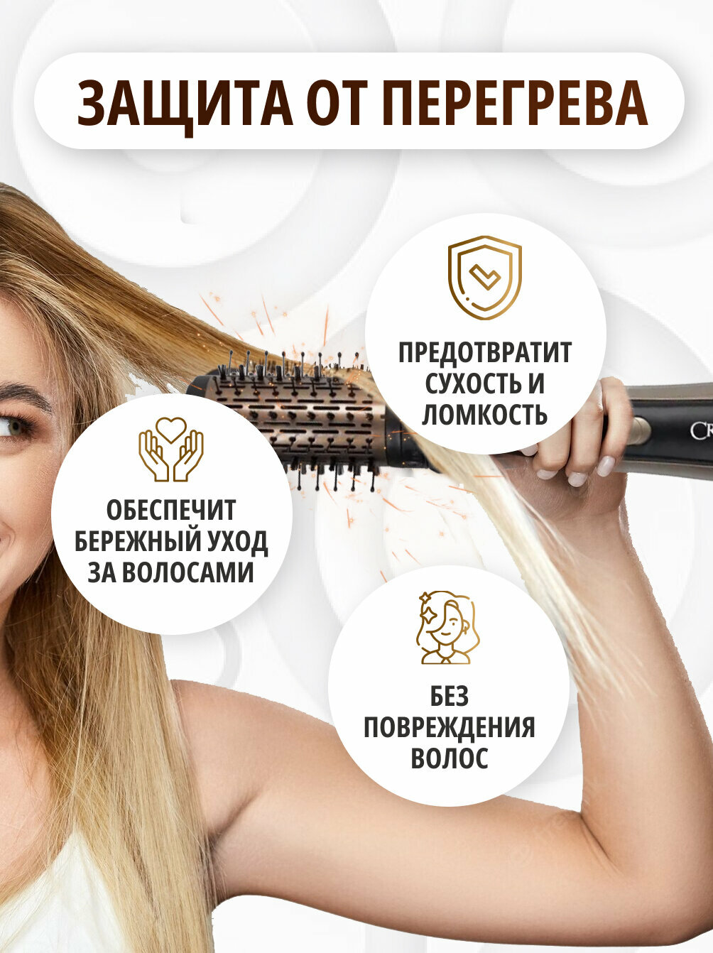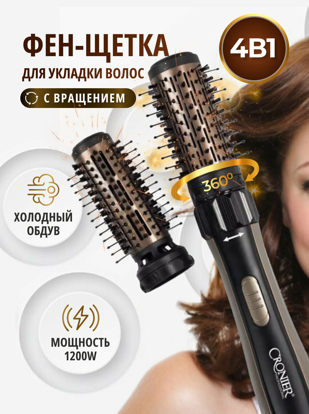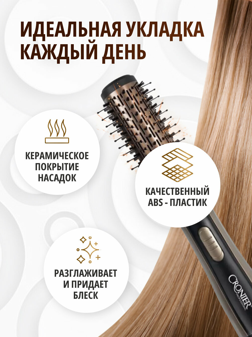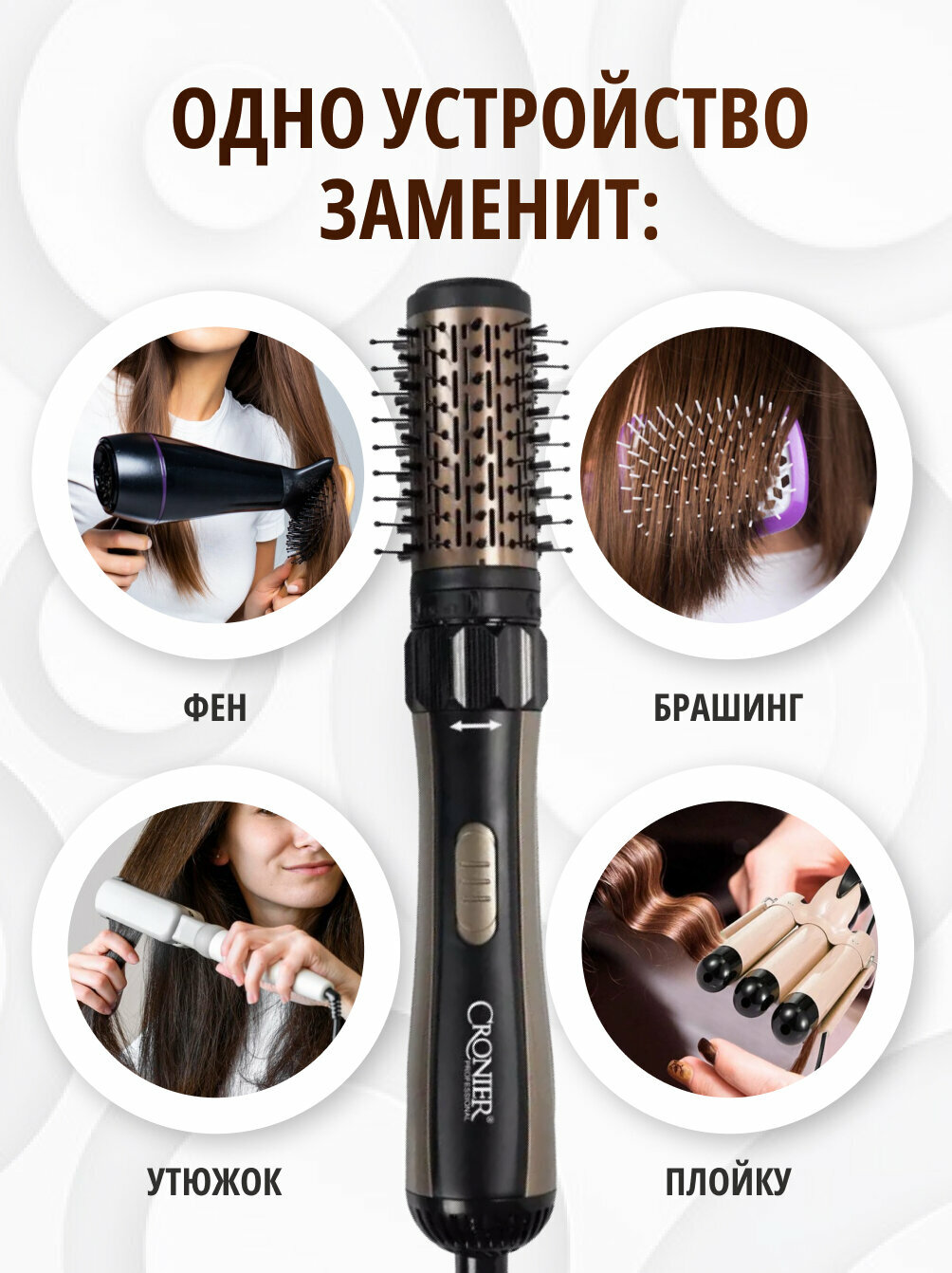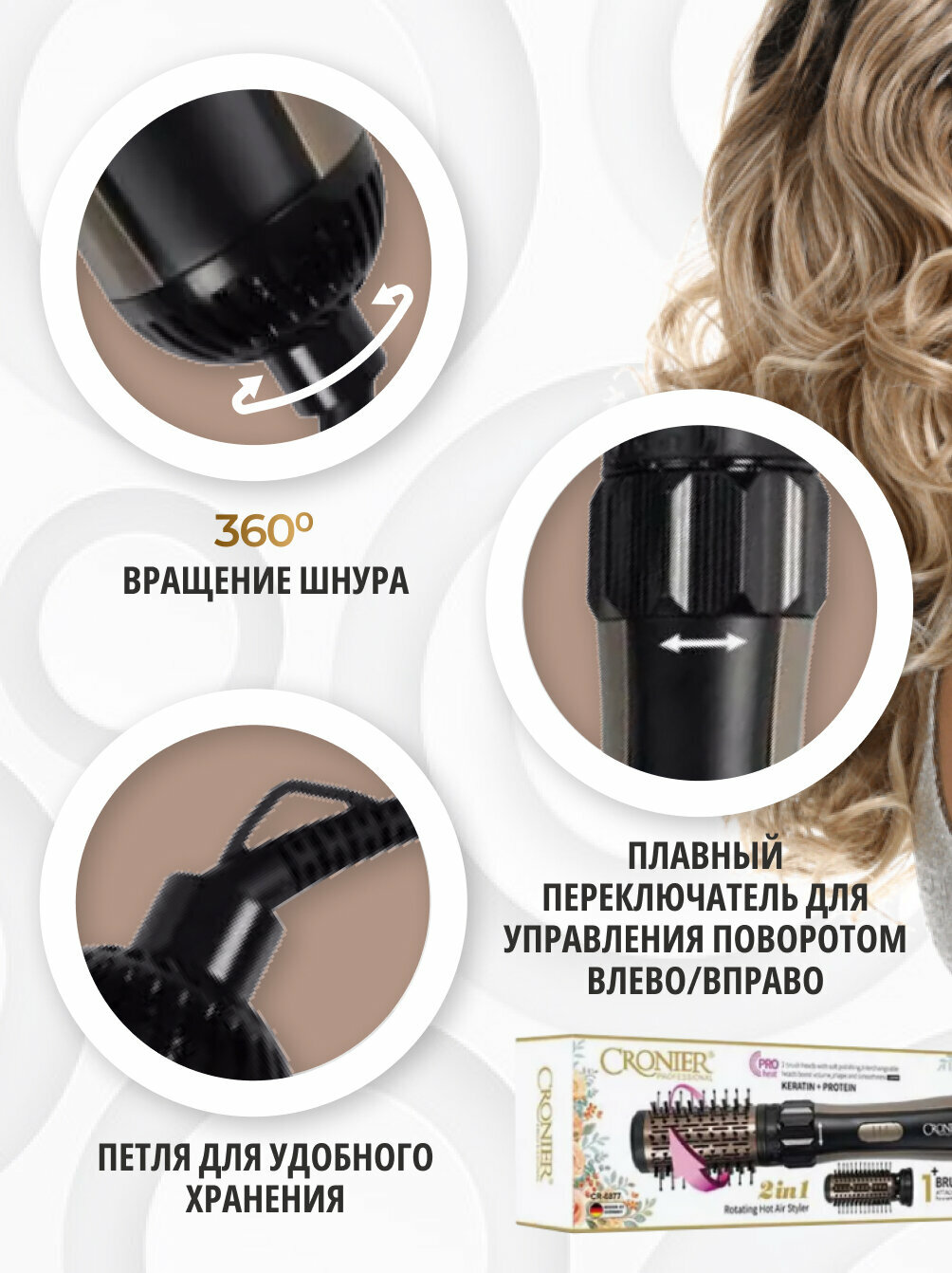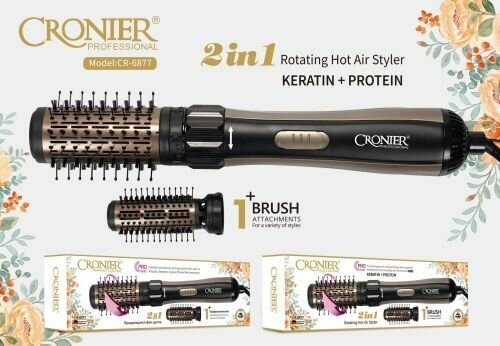 Профессиональная фен-щетка с вращением Cronier-6877 интересное:
