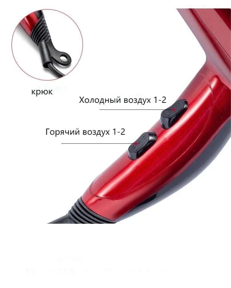 Фен, фен для волос, 2400 вт, профессиональный фен, фен с насадками, для укладки волос,красный интересное: