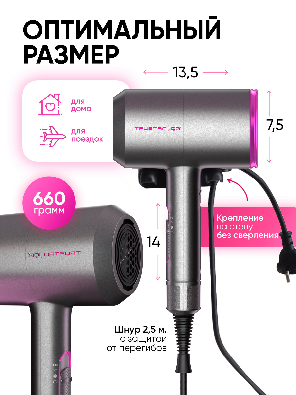 | Особенности | вращение шнура / защита от перегрева / настенный |