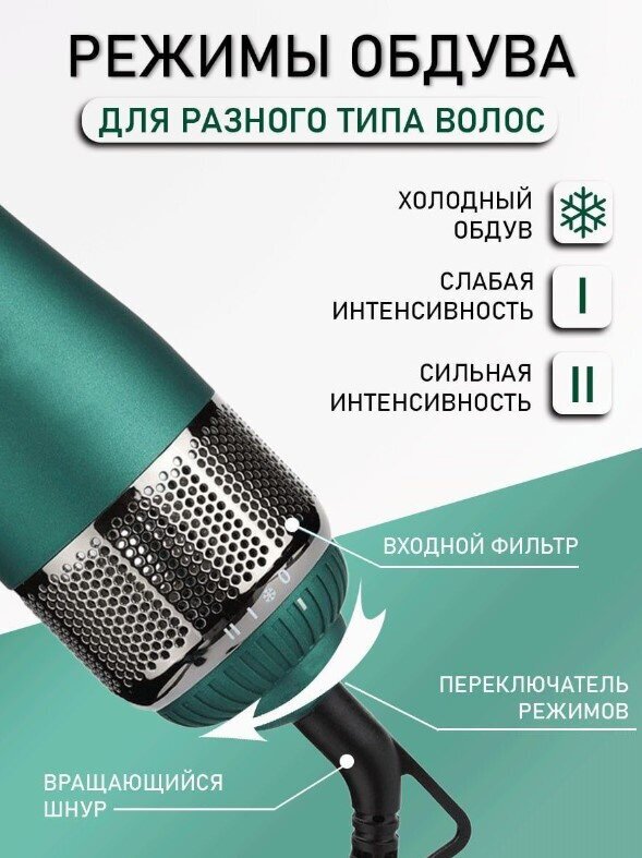 Профессиональный фен щетка для волос/ Термощетка для укладки волос / Стайлер / Фен расческа с концентратором интересное: