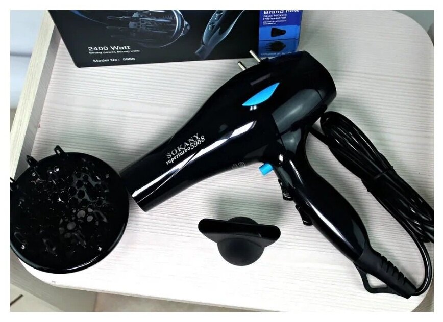 Профессиональный фен для волос с насадками и ионизацией GORGEOUS HAIR/Эффект быстрой сушки , мощность 2400 Вт/Sokany SK-5988 интересное: