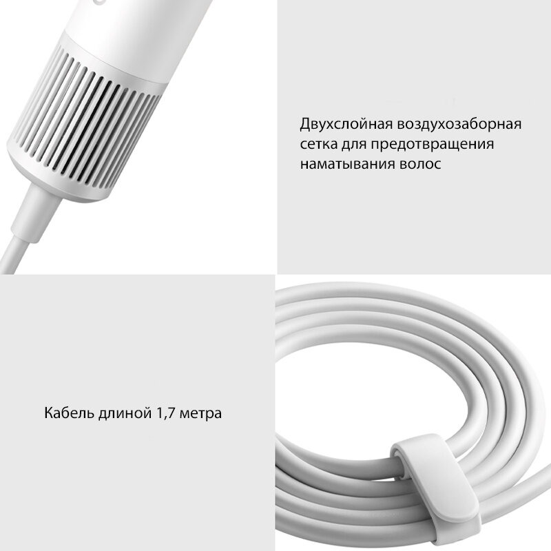 Фен Xiaomi, бесшумный, ионизация, мощность 1600Вт, длина шнура 1,7м
