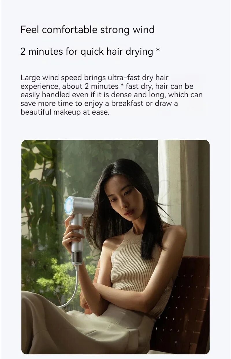 Фен Xiaomi, бесшумный, ионизация, мощность 1600Вт, длина шнура 1,7м