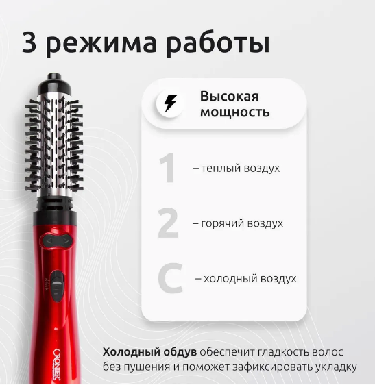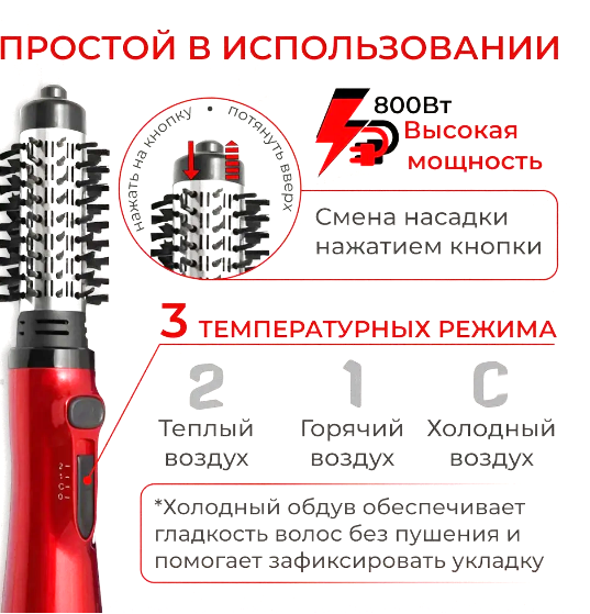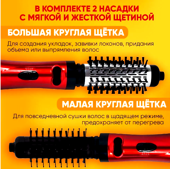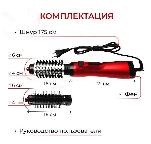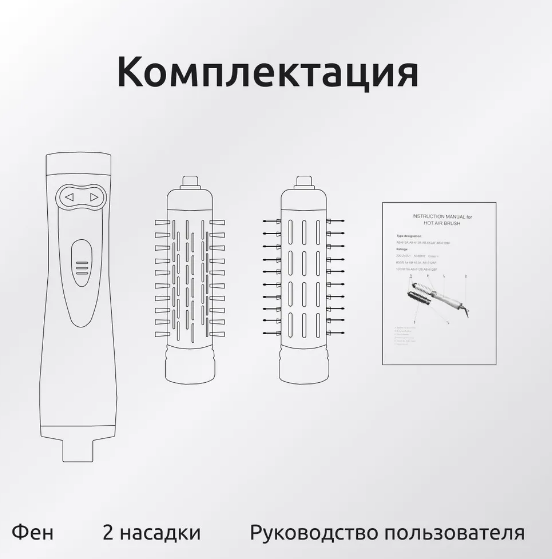 | Подробная комплектация | Фен-щетка для волос - 1 шт., насадка - 2 шт., инструкция. |
