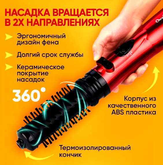 Купить Профессиональный Фен-щетка с вращающейся насадкой Pro/салонный Стайлер/укладка волос/уход за волосами/домашний/для салона/красный
