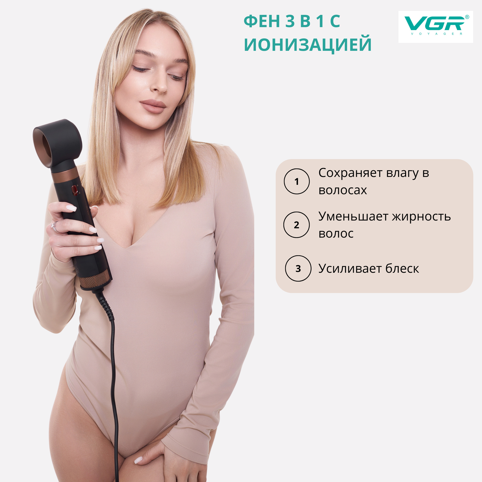 Фен-щетка для волос VGR V-491 интересное: