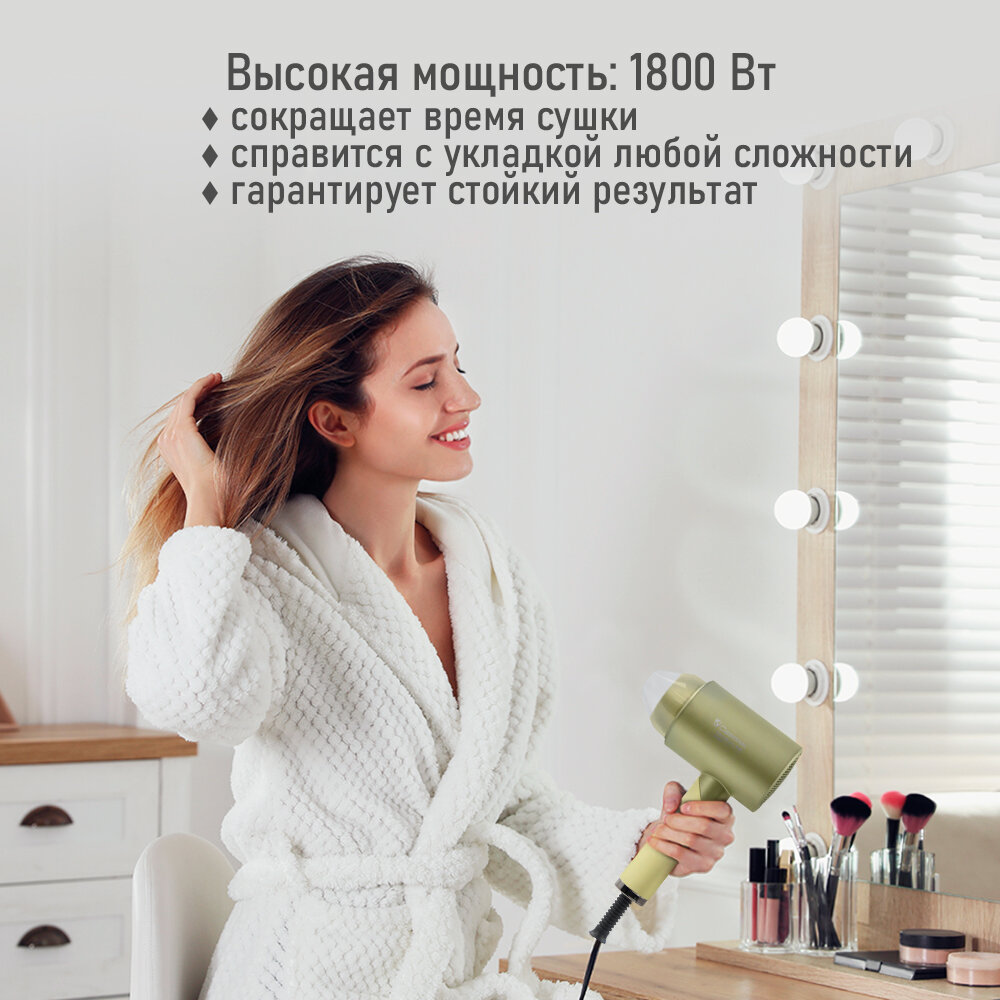 Фен для волос ионный с диффузором, складной 1800 ВТ