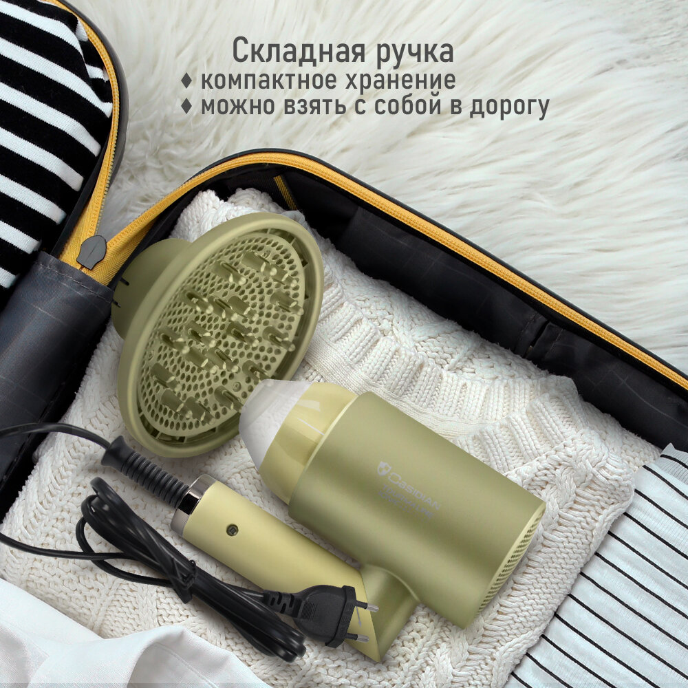 Фен для волос со складной ручкой, ионный, 1800 Вт